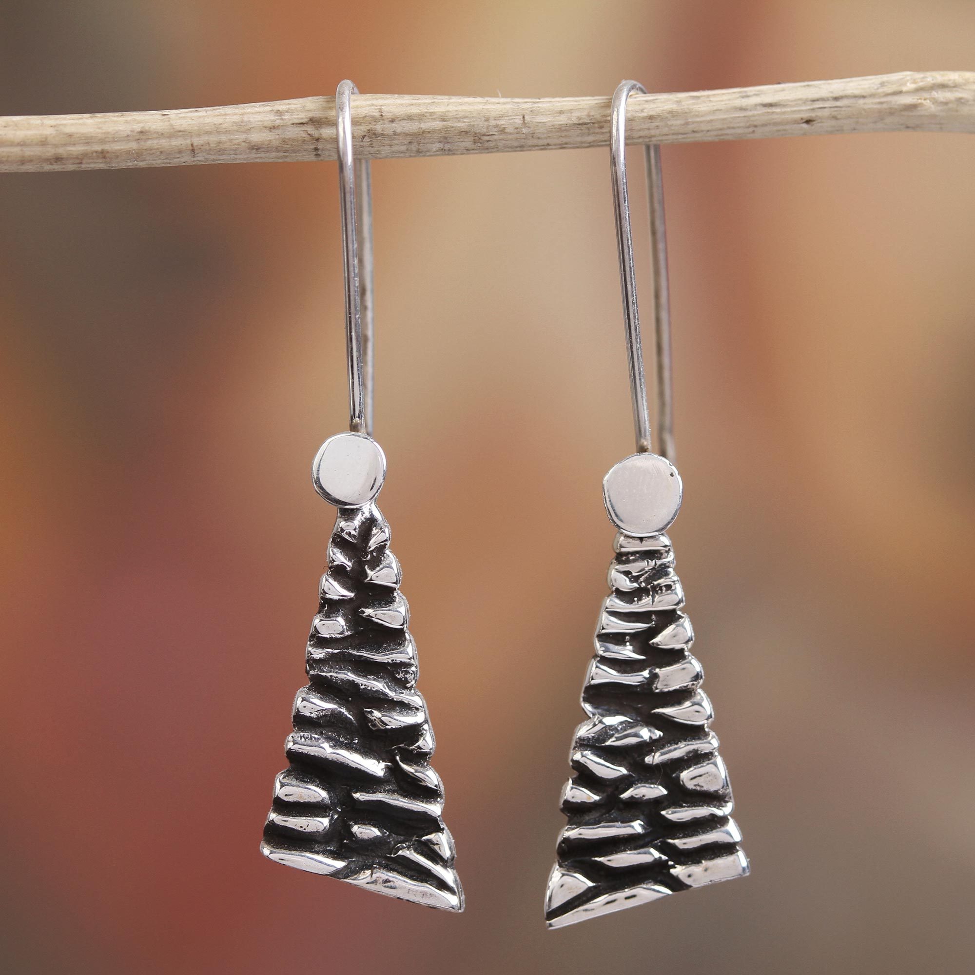 Modern Taxco Sterling Silver Dangle Earrings from Mexico, 'Taxco Texture'