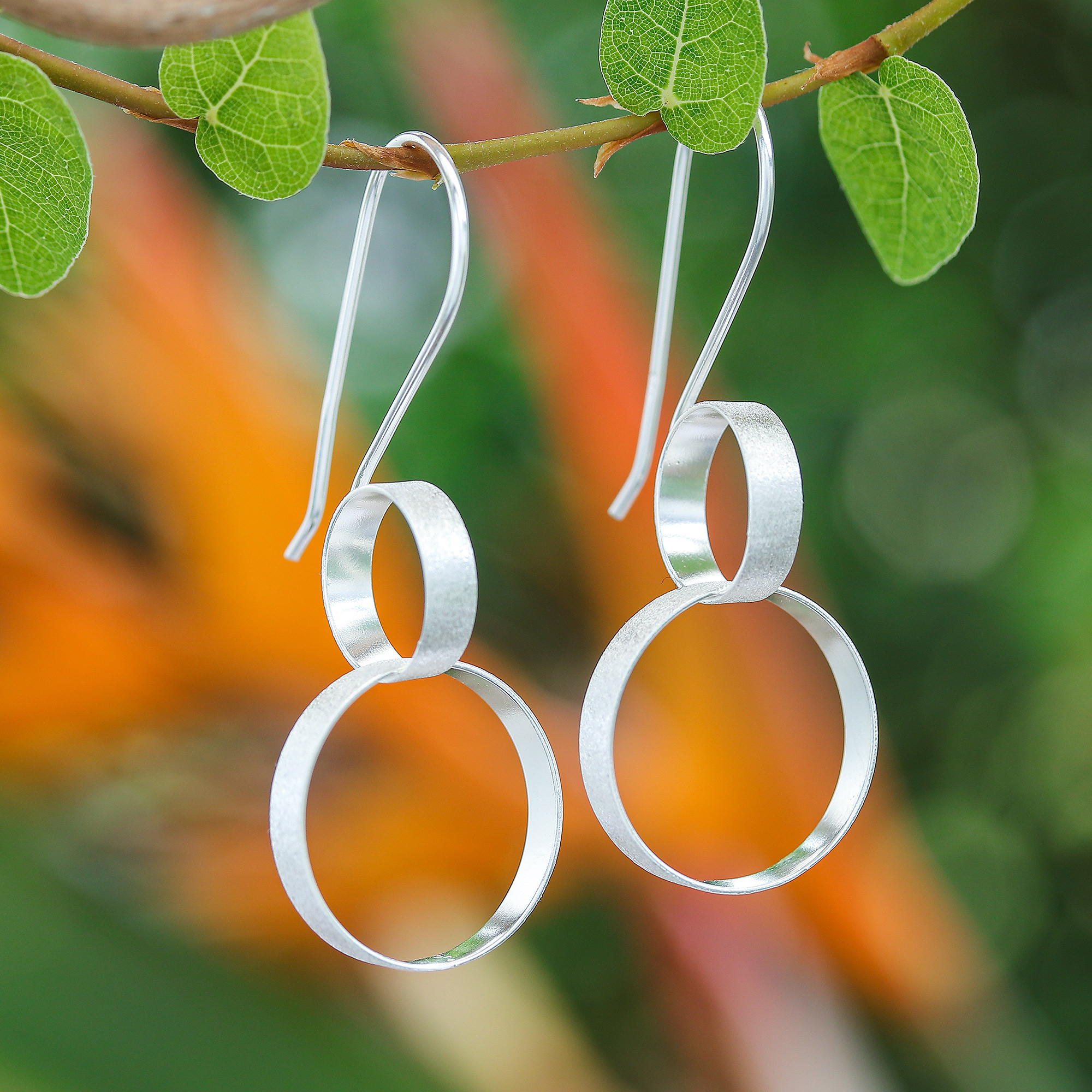 Modern Thai Sterling Silver Ring-Themed Drop Earrings, 'Circular Glam'