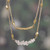 Capture every glance in the room with this mesmerizing double-strand brass pendant necklace that weaves together texture and luminosity in perfect harmony. Two delicate bar chains flow gracefully, one adorned with gleaming brass discs that create rhythmic movement while the other sparkles with ethereal moonstone chips that bring an otherworldly glow to your neckline. Indian artisan Sabir's chic design becomes that essential accessory you'll reach for whenever you want to add a touch of celestial magic to your look.