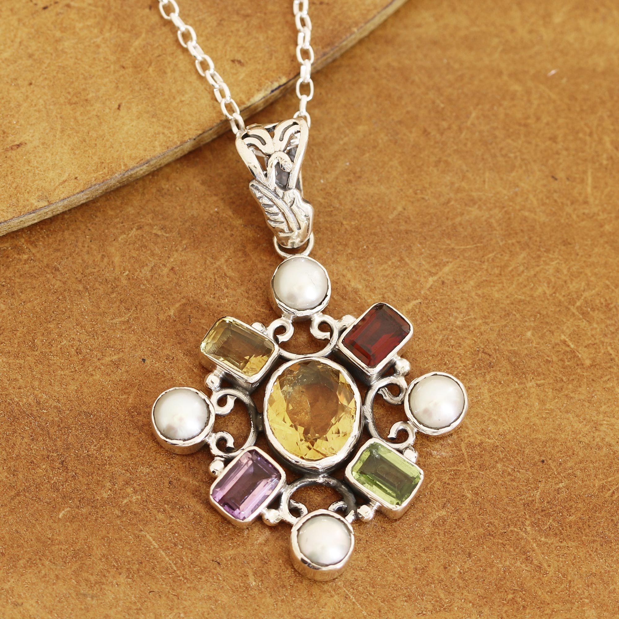 Multi-Gemstone Pendant Necklace Crafted in India, 'Alluring Style'