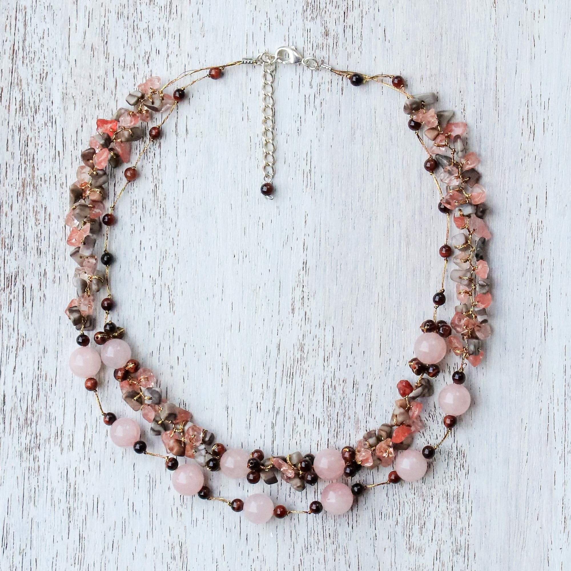 Multi-Gemstone Rose Quartz Beaded Necklace from Thailand, 'Magical Inspiration in Pink'