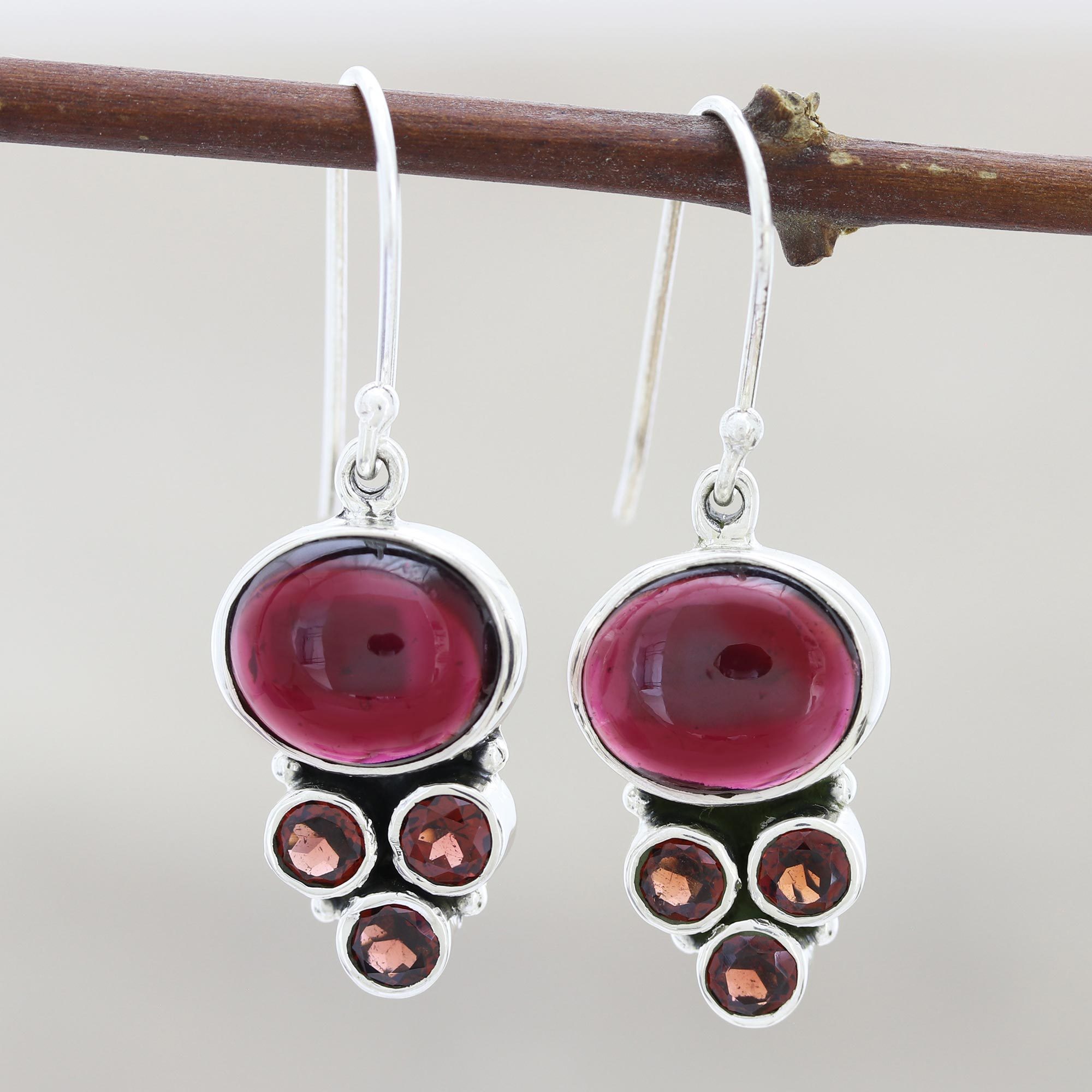 Some sparks never go out, even after years and years. These earrings are presented by Shanker, who works with local artisans in India to create beautiful jewelry. These dangle earrings feature cabochon and faceted garnets set in sterling silver.