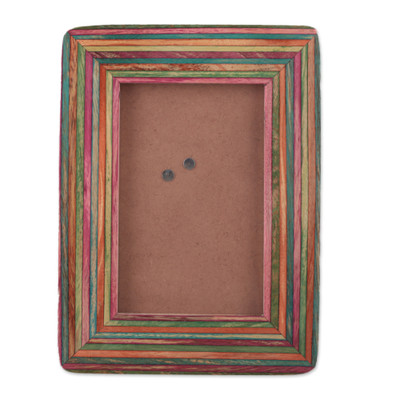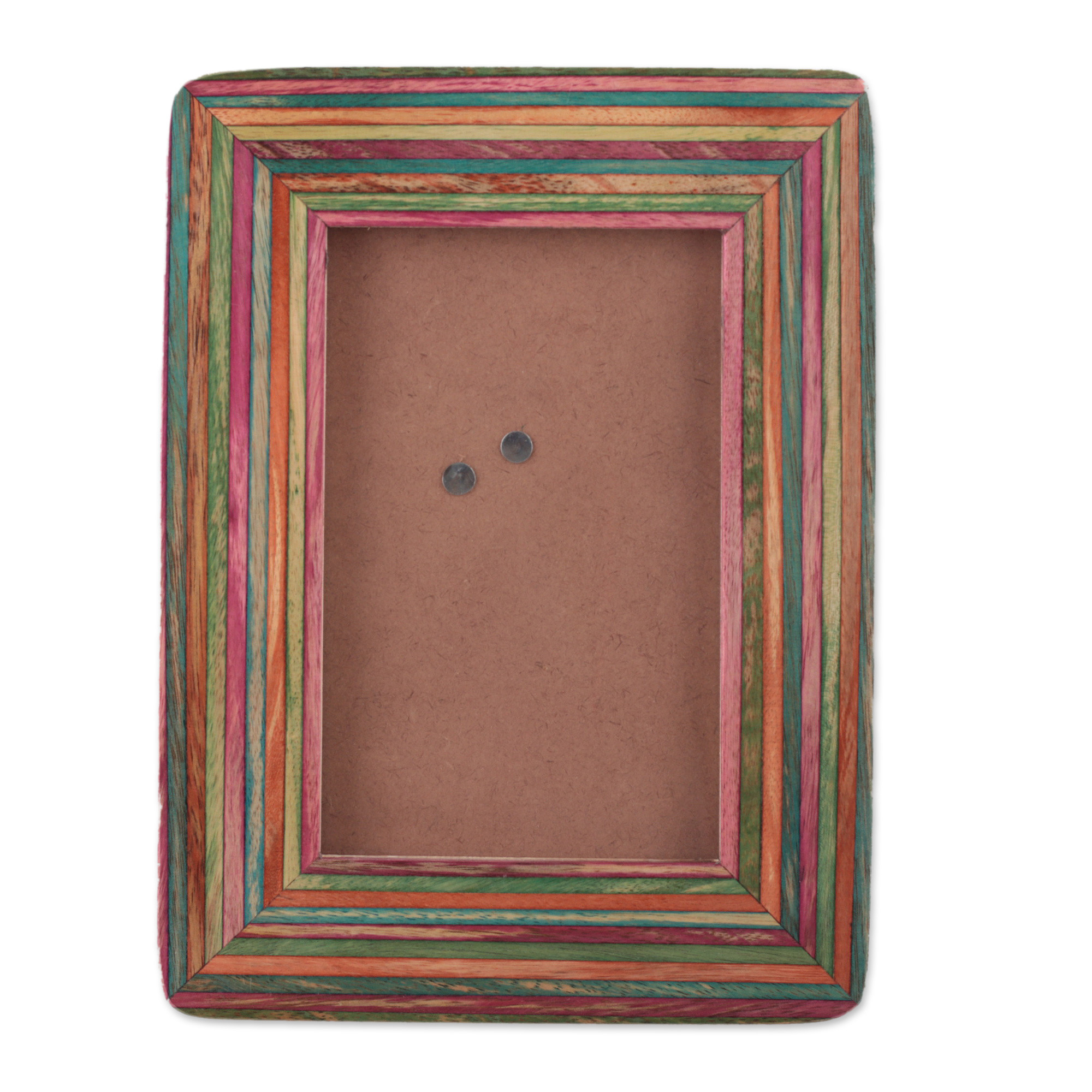 Multicolor Painted 4x6 Mango and Haldu Wood Photo Frame, 'Memorable Colors'