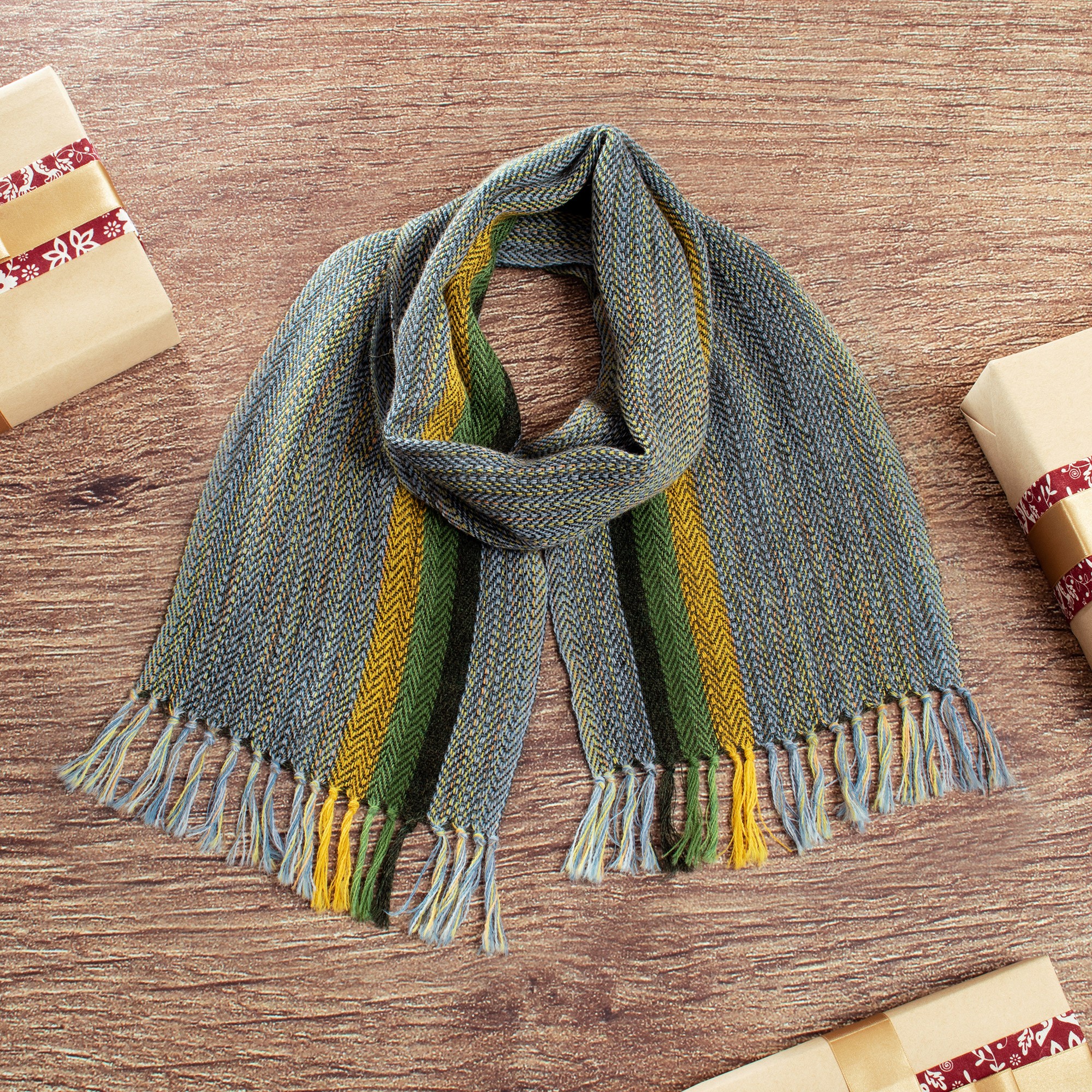 Add a touch of Andean elegance to your winter wardrobe with this glamorous alpaca scarf from the talented artisans of the Ulloa family in Peru. Soft, stylish and fringed, this hand-loomed accessory flaunts chic stripes and chevrons in a refined color palette. Drape it around your neck for instant sophistication and cozy warmth all season.
