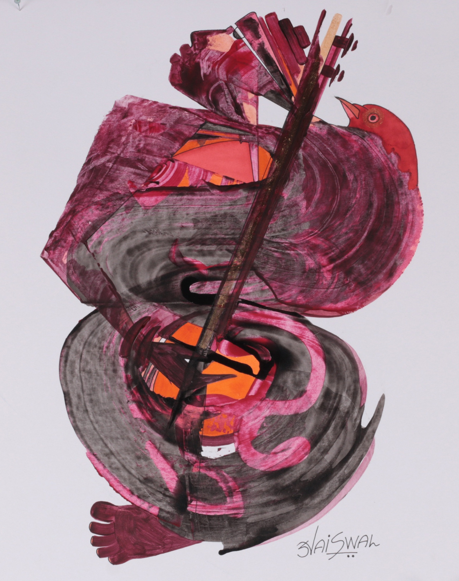 Rhythm, form and spirit embrace each other to celebrate music in this expressionist painting by India's Sunil Jaiswal. Soft brushstrokes of acrylic paint a paper surface with intense colors, capturing the warmth of the region's music but also the union between each note and the artist's soul.
