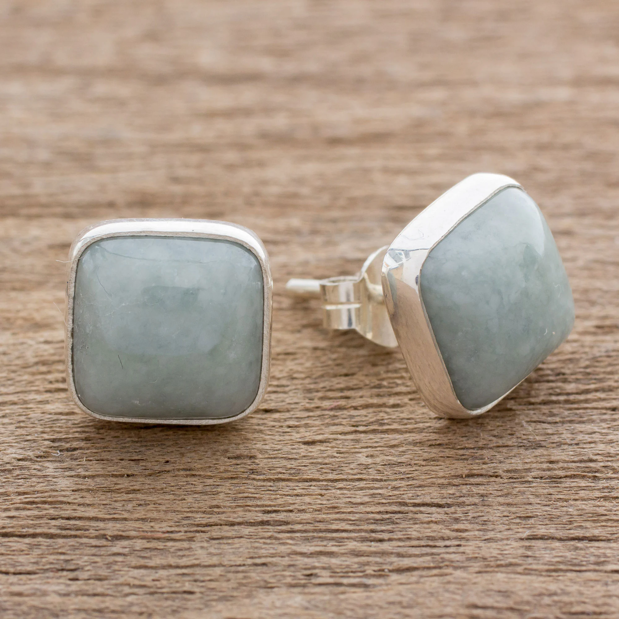 Natural Apple Green Maya Jade and Silver 925 Stud Earrings, 'Apple Green Symmetry'