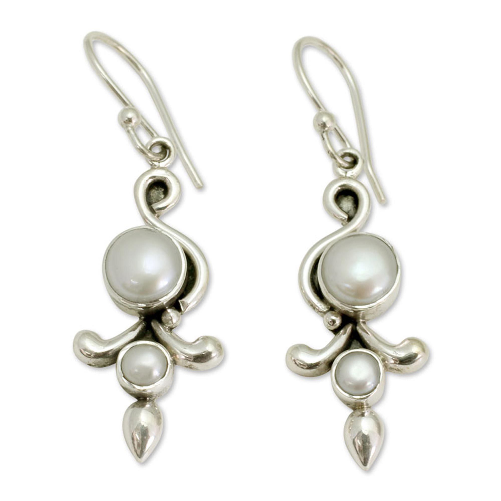 Natural Pearl Earrings from India, 'Heavenly Pearls'