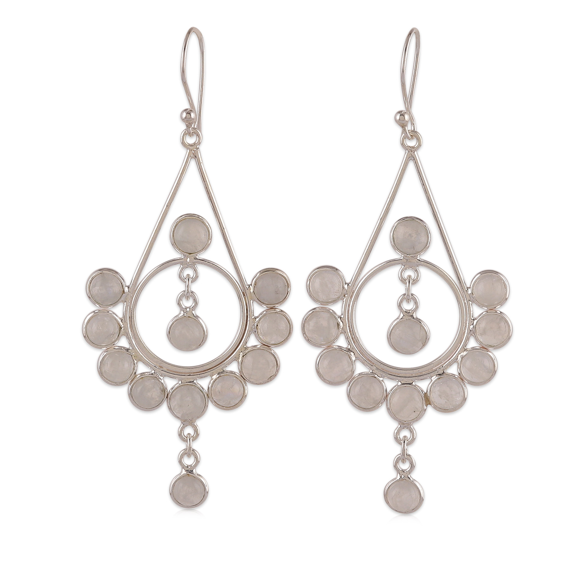 Neeru Goel's newest dangle earrings shine with the light of an enchanted night, alive in each of their details. Natural rainbow moonstones dance around this sterling silver pair, whose ethereal look finds a perfect complement in a high-polish finish.