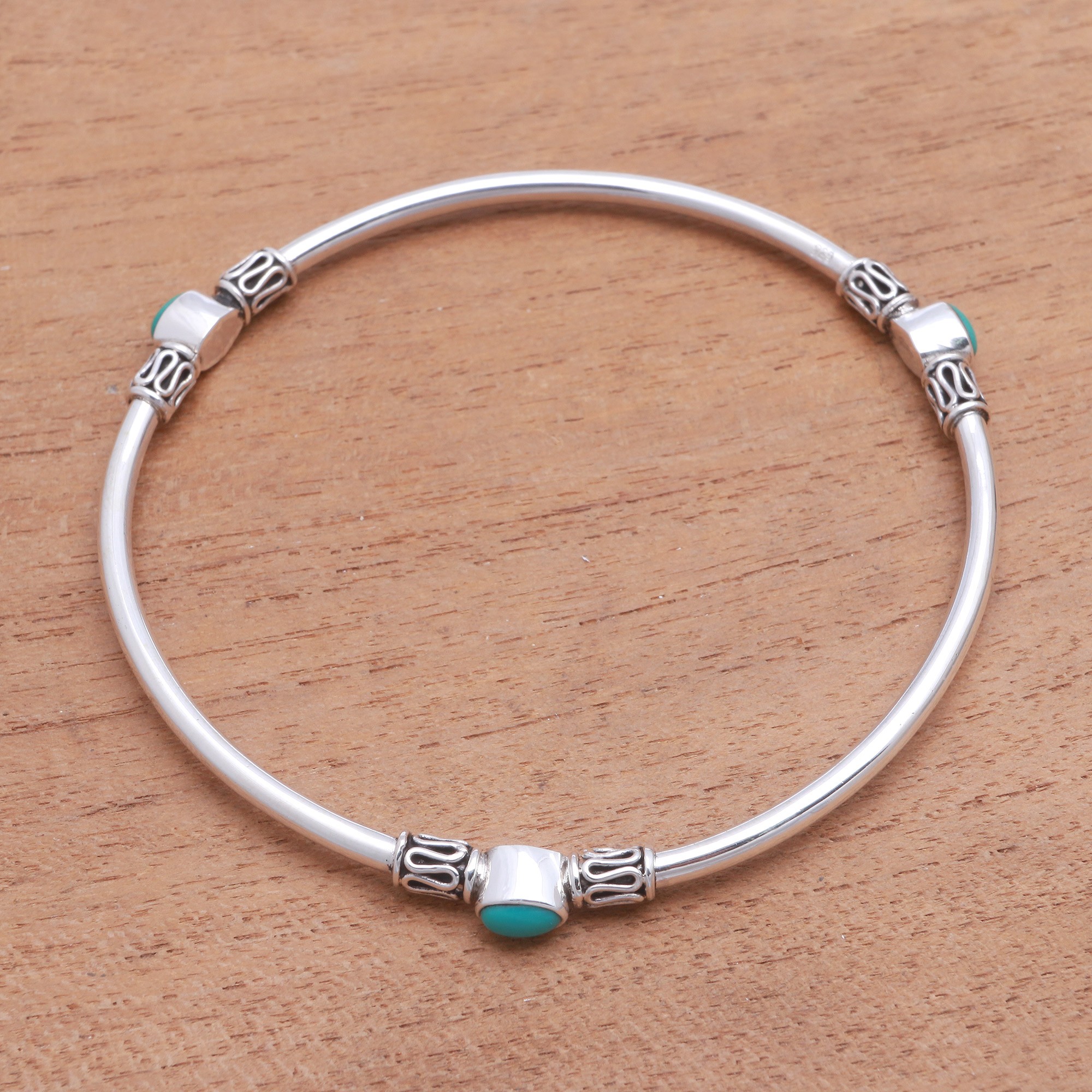 Natural Turquoise Bangle Bracelet from Bali, 'Harmony of Three'