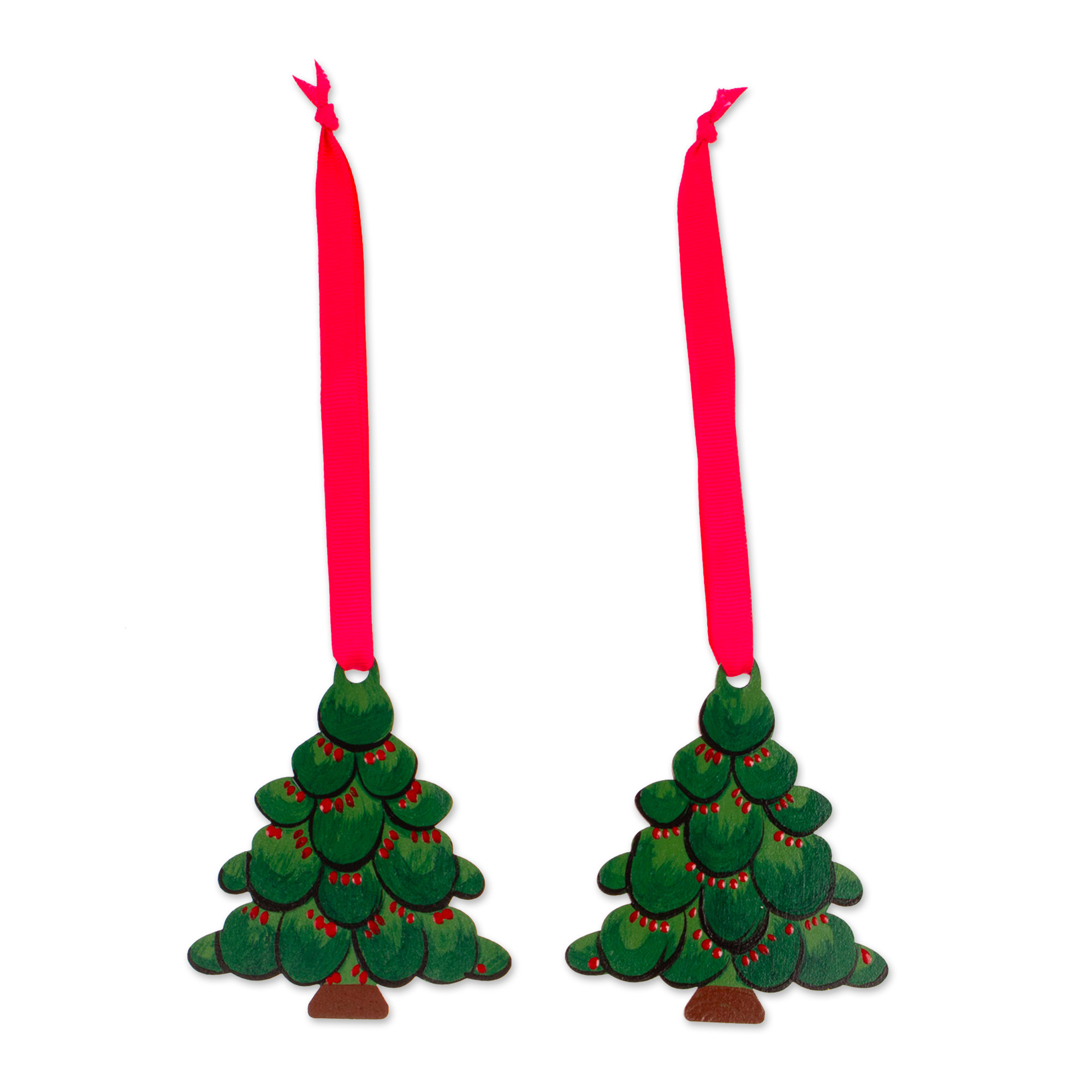 Nature-Themed Christmas Tree-Shaped Green Wood Ornament Pair, 'Evergreen Christmas'
