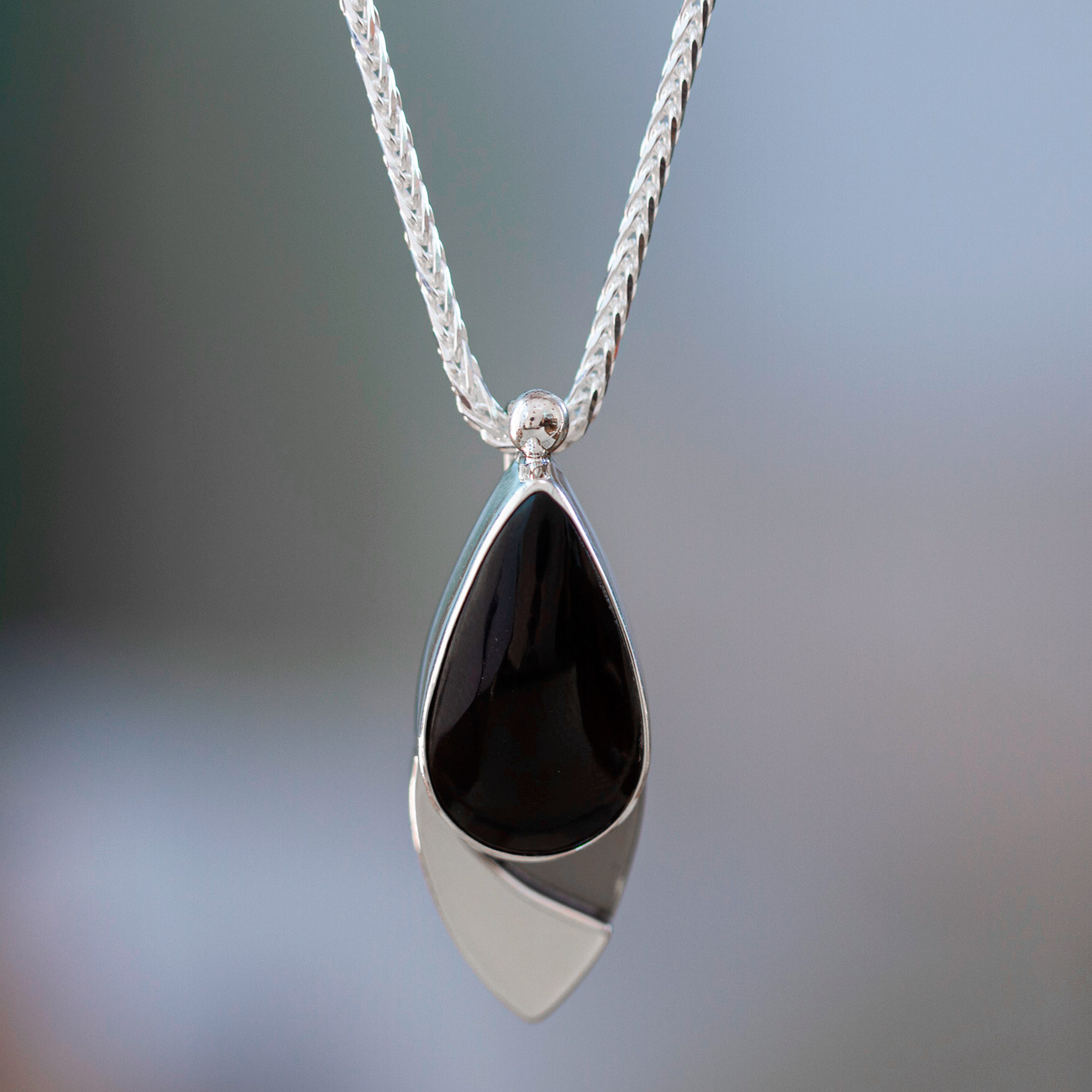 Obsidian Pendant Necklace in Taxco Silver from Mexico, 'Night's Edge'