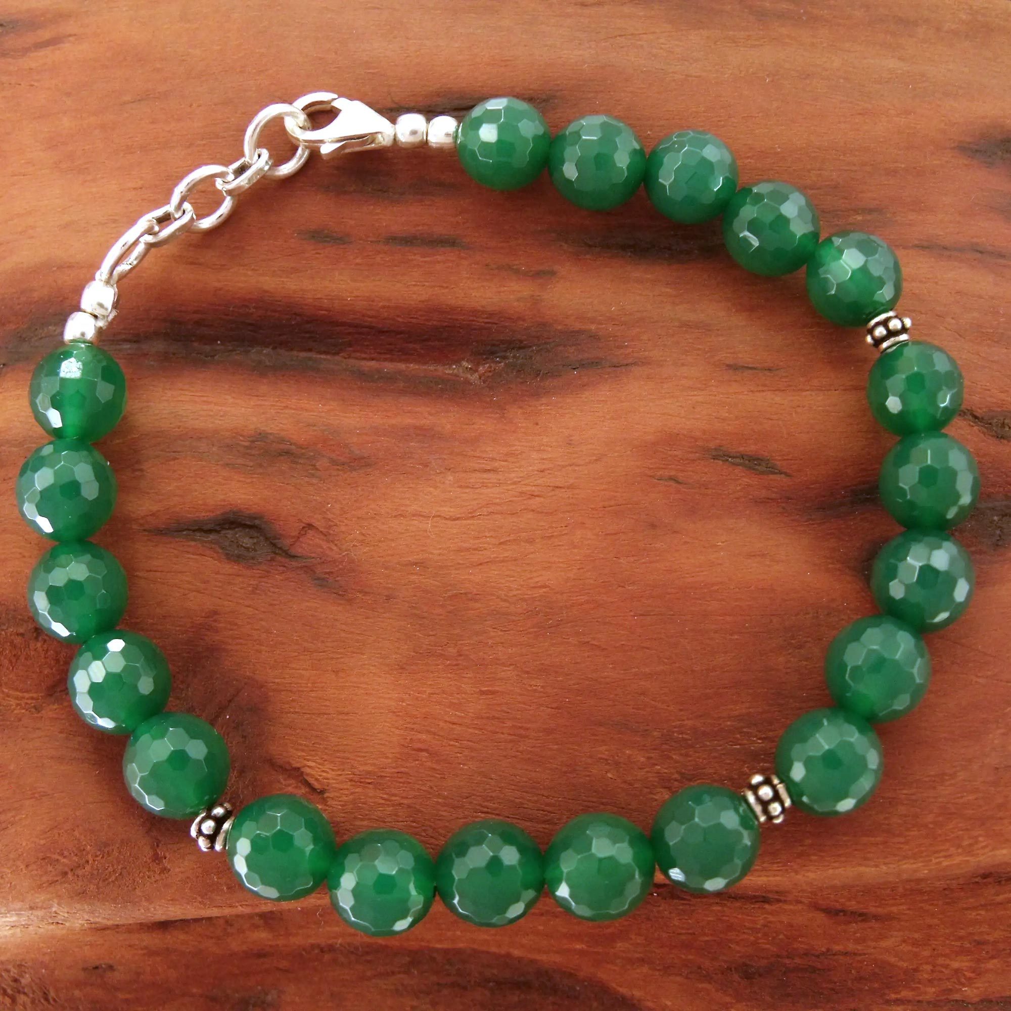 Faceted globes of verdant onyx encircle the wrist with beauty. Narayannii accentuates the bracelet with sterling silver.