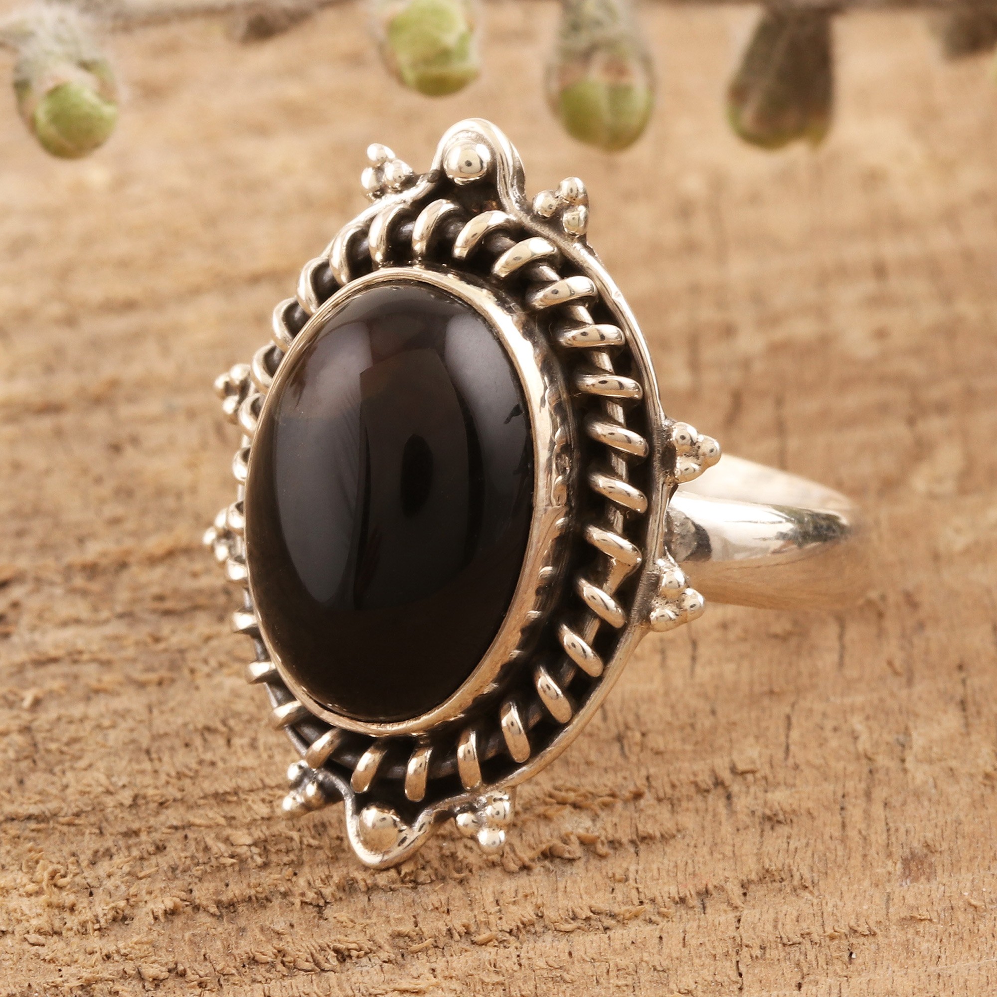 Onyx Cabochon Cocktail Ring from India, 'Rapt'