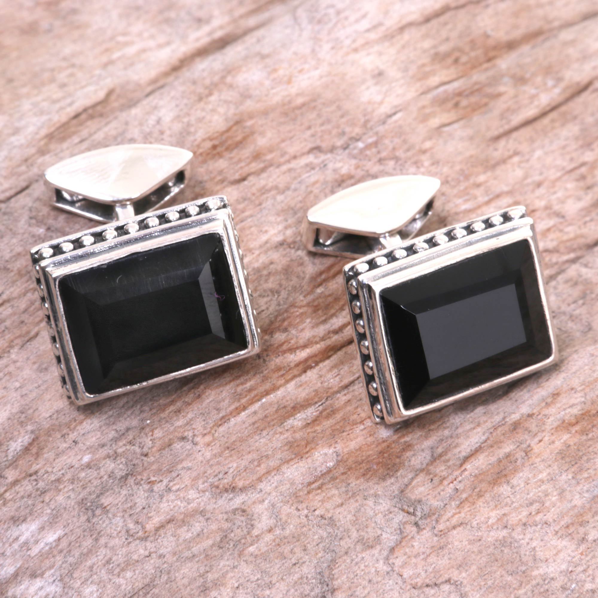 Onyx cufflinks, 'Solemn Elegance'