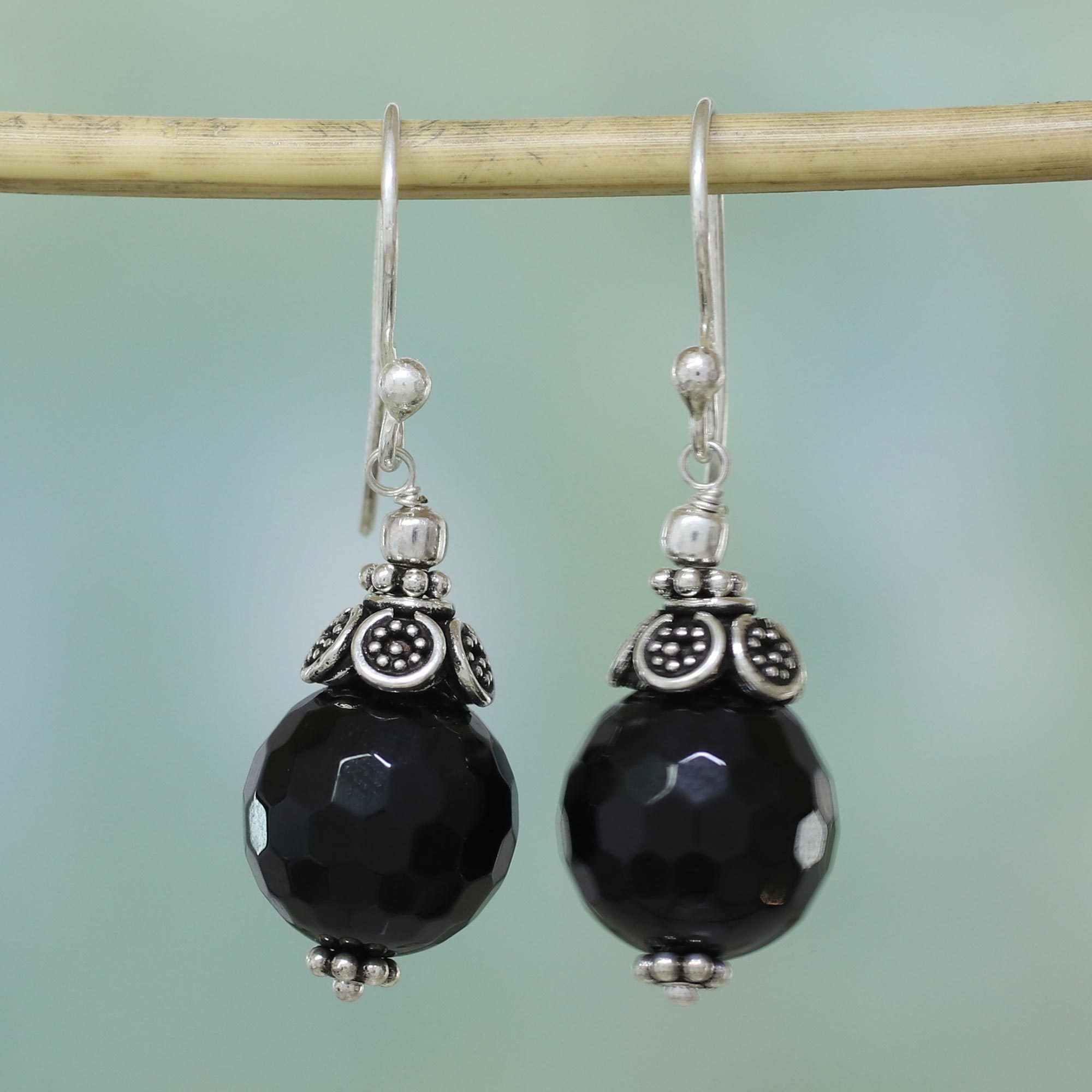 Onyx dangle earrings, 'Jaipur Sonnet'