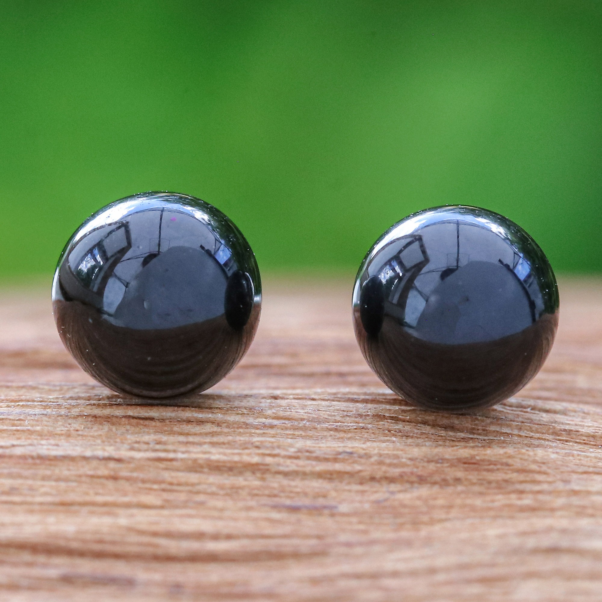 Onyx Stud Earrings with Sterling Silver Posts, 'Mystery Dimension'