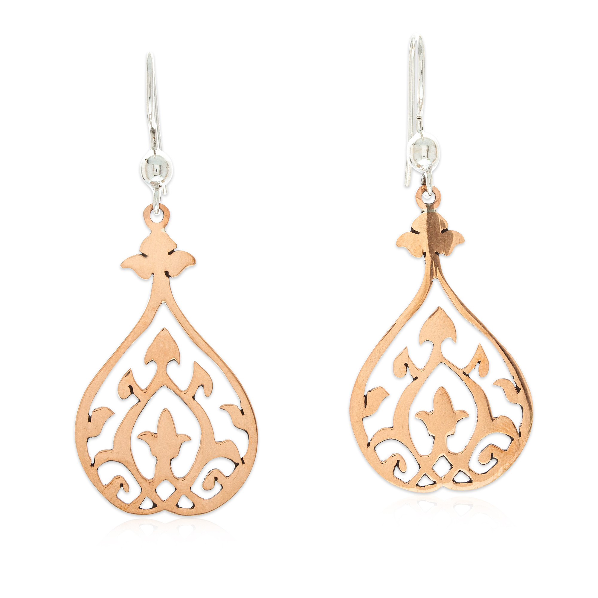 Openwork Copper Dangle Earrings with Taxco Silver Hooks, 'Openwork Majesty'