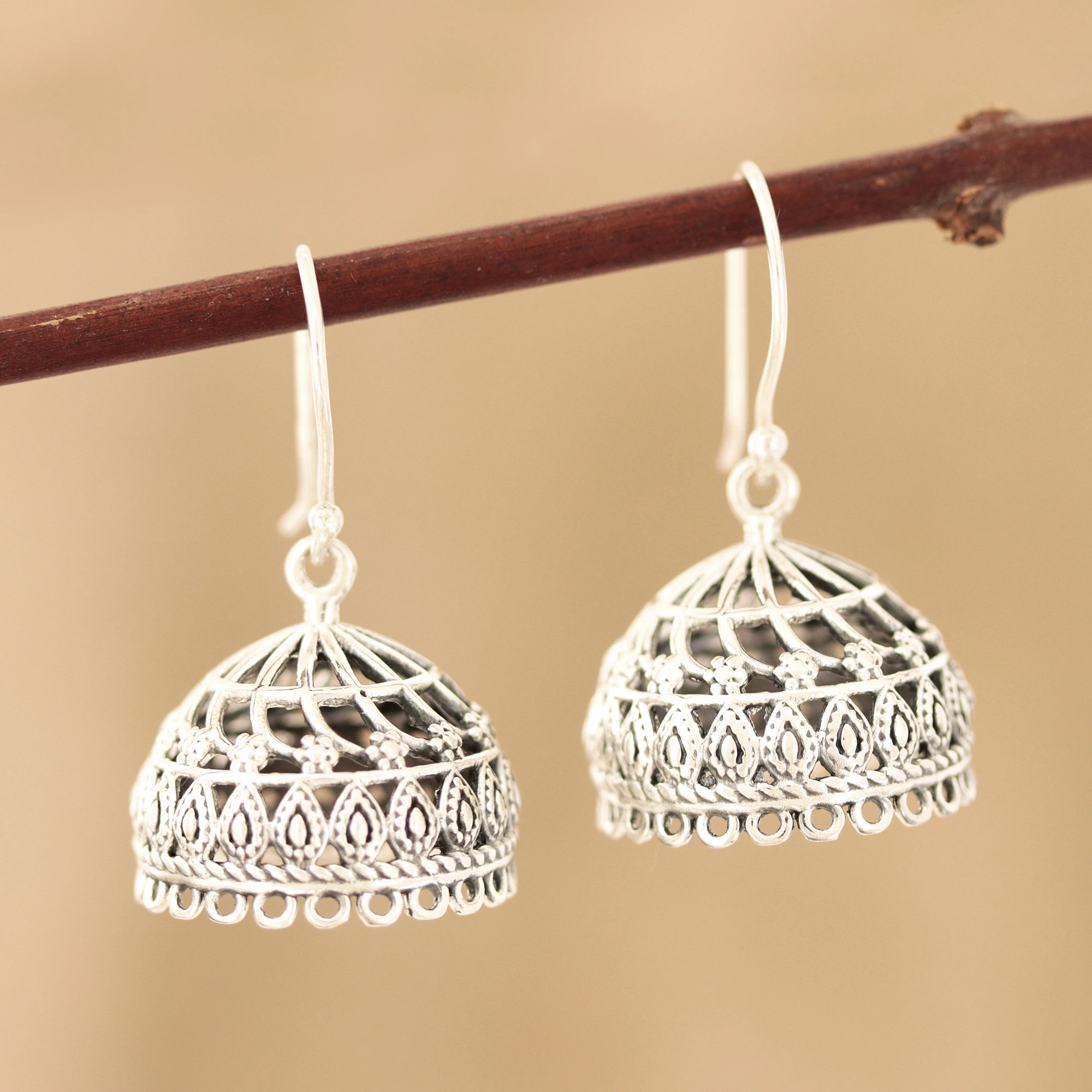 Openwork Sterling Silver Jhumki Dangle Earrings from India, 'Intricate Jhumki'