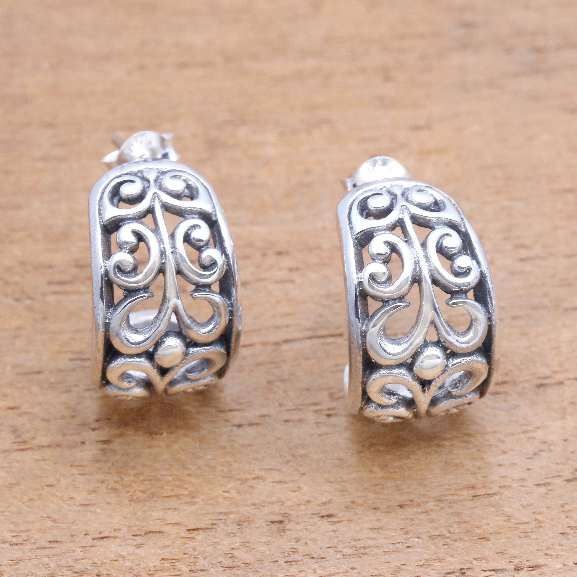 Openwork Swirl Pattern Sterling Silver Half-Hoop Earrings, 'Swirling Trellis'