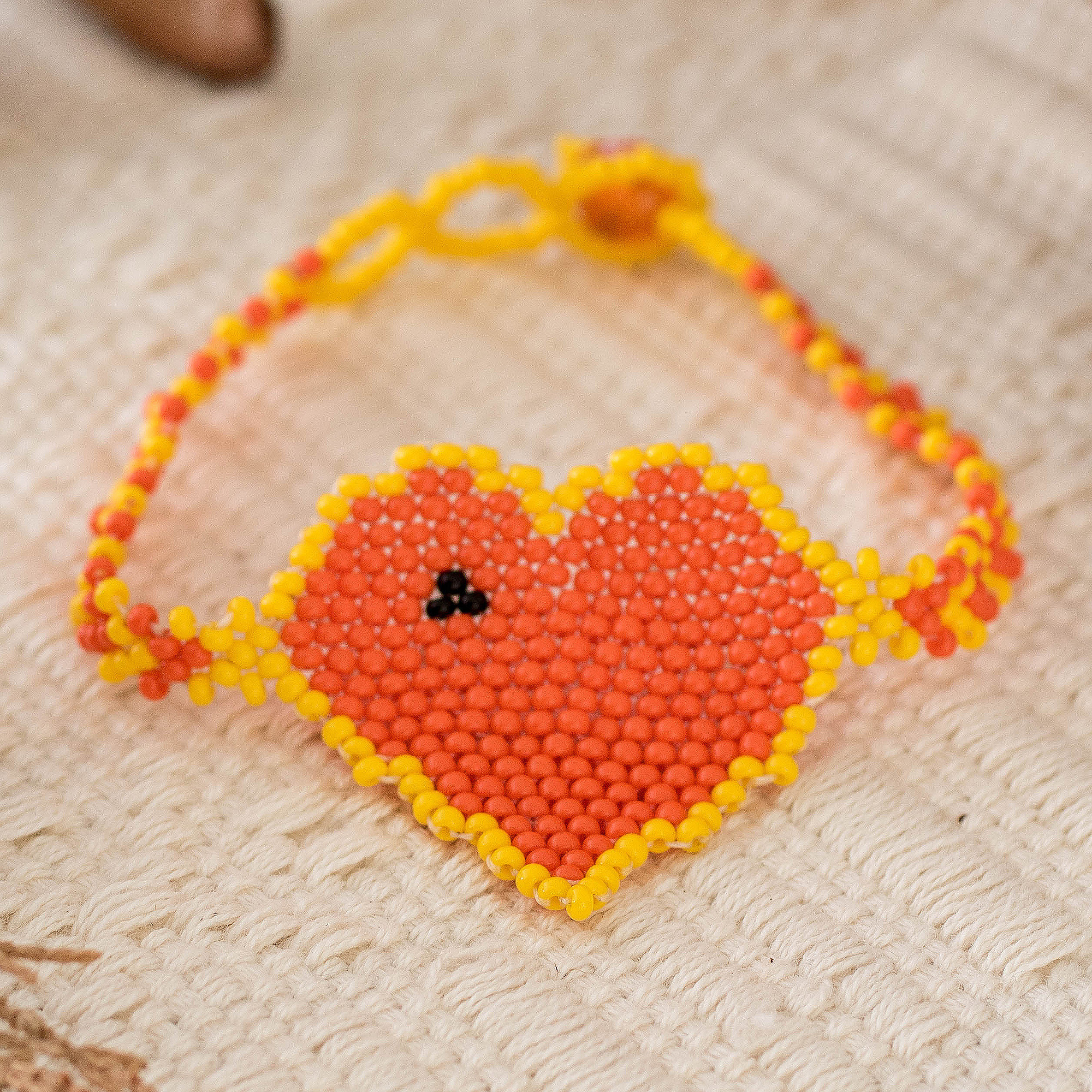For a bit of Guatemalan flair, slip on this energizing orange, yellow and black bracelet crafted from tiny glass beads by the Artisans of Panabaj. The heart-shaped pendant lends a playful touch and the crystal bead button closure offers easy adjustment, letting you style it your way every time.