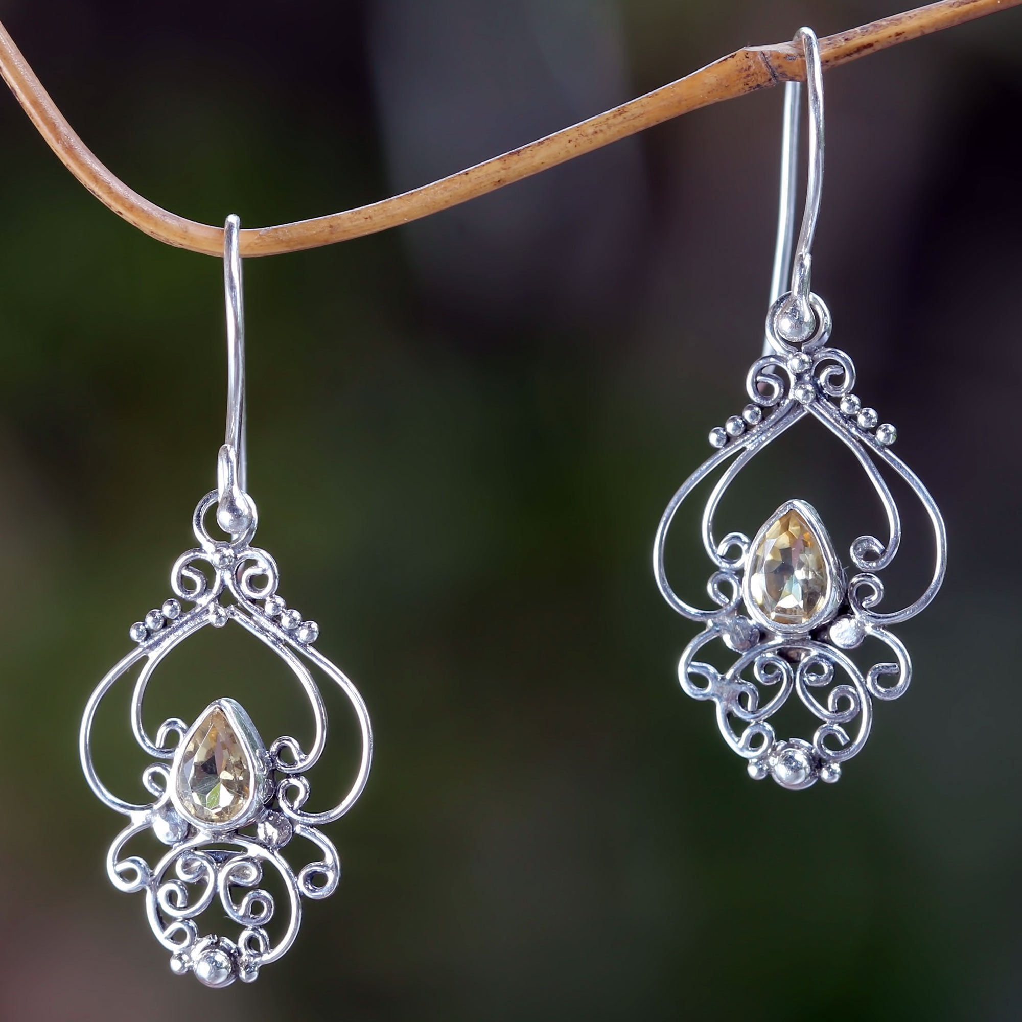 Ornate Citrine and Sterling Silver Dangle Earrings, 'Golden Arabesque'