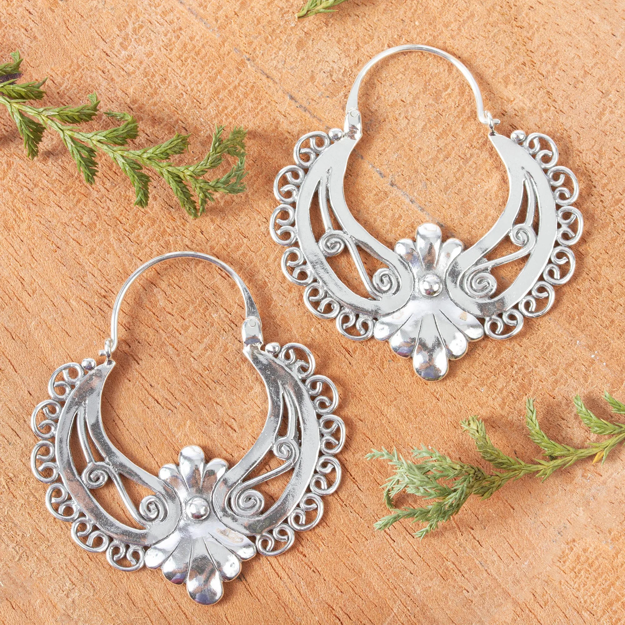 These gorgeous hoop earrings are the original design of Mexico's Gianluca Anzani, who use the ancient "lost wax" technique to create his pieces. The ornate earrings are crafted from sterling silver and polished to a high shine.