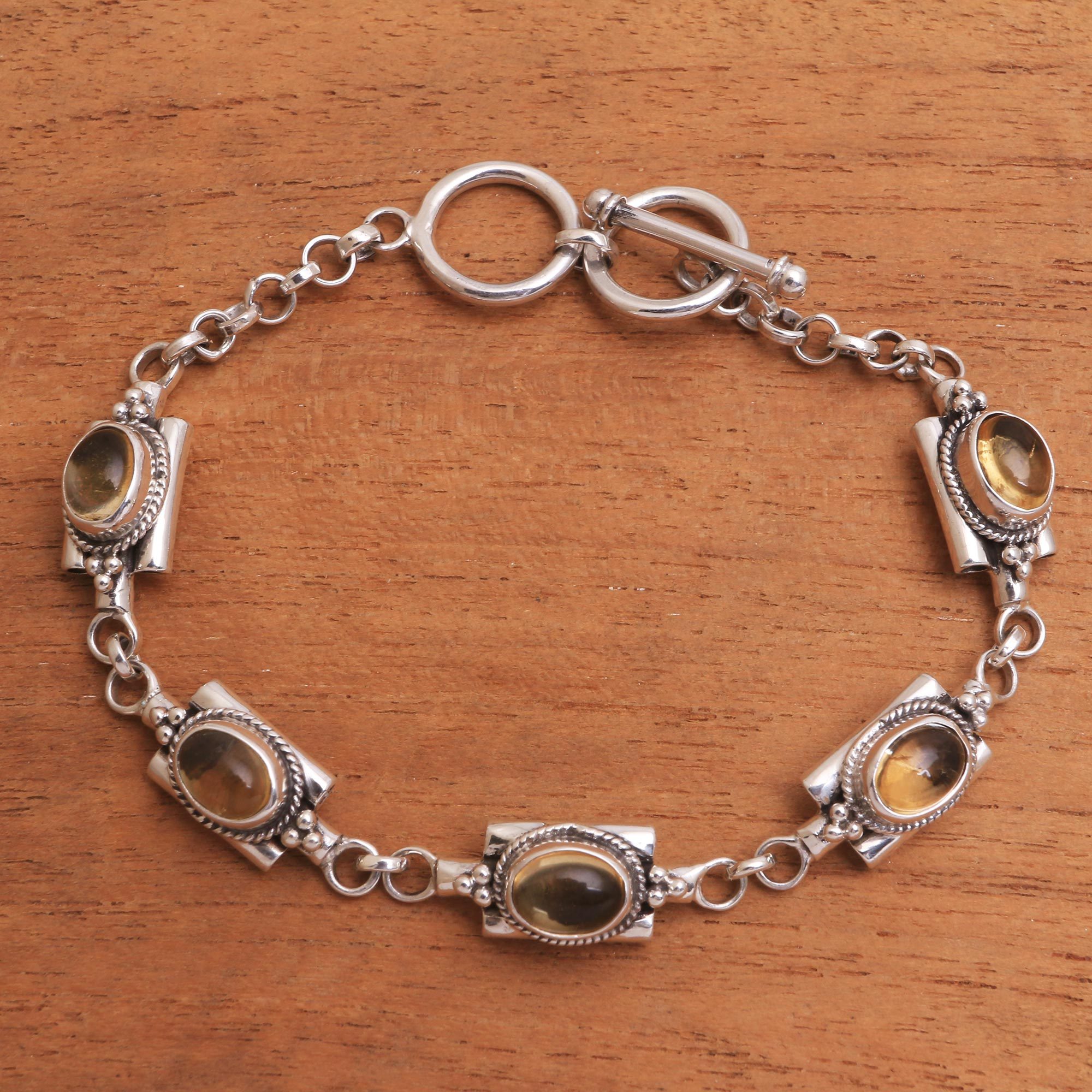 Elegant links are crafted of sterling silver, circling the wrist in this bracelet from Bali. Buana designs the bracelet, adding a rich yellow citrine to each link for an accessory that brings a charm to the wearer.