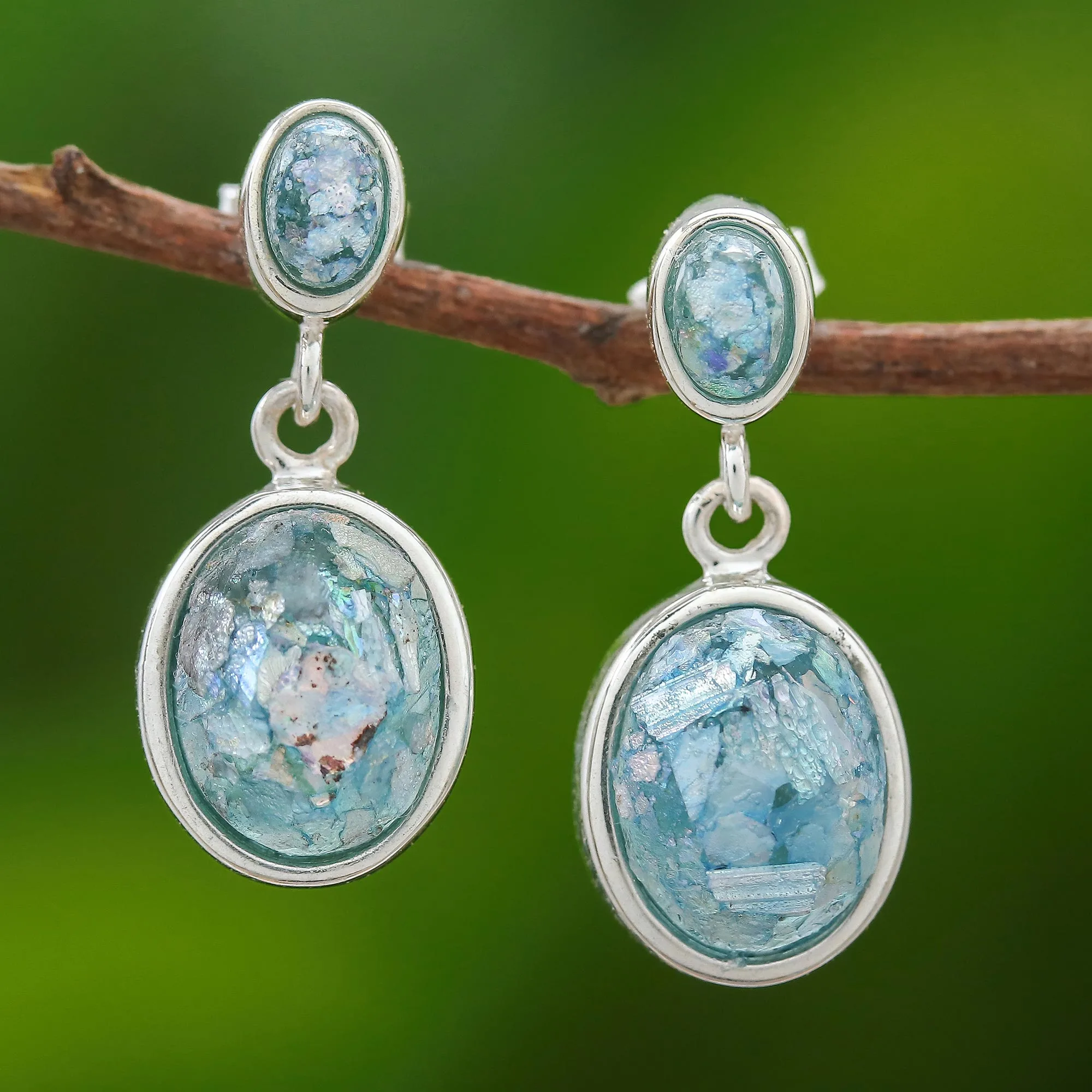 Oval Roman Glass Dangle Earrings from Thailand, 'Romantic Ovals'