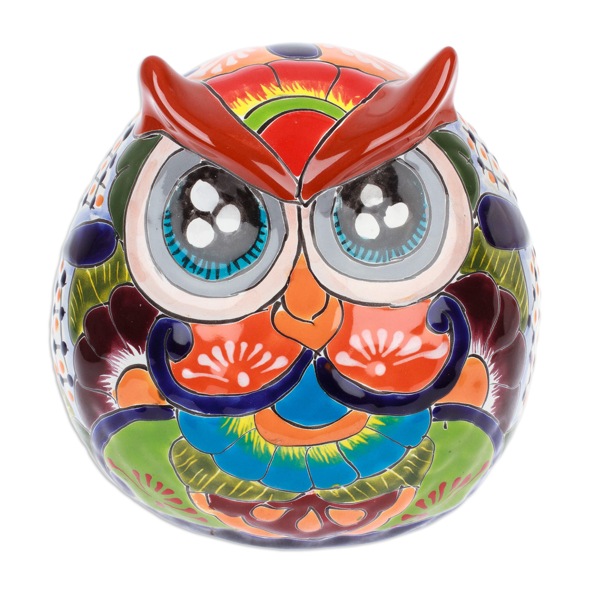 Cute and mystic, this adorable owl is the main inspiration for Mexican artist Sergio Ponce, who uses traditional techniques to create this tender ceramic sculpture. Painted by hand in blue and red hues, this floral artwork has a classic Hacienda style that enriches its sweet aura while paying honor to the region's arts.