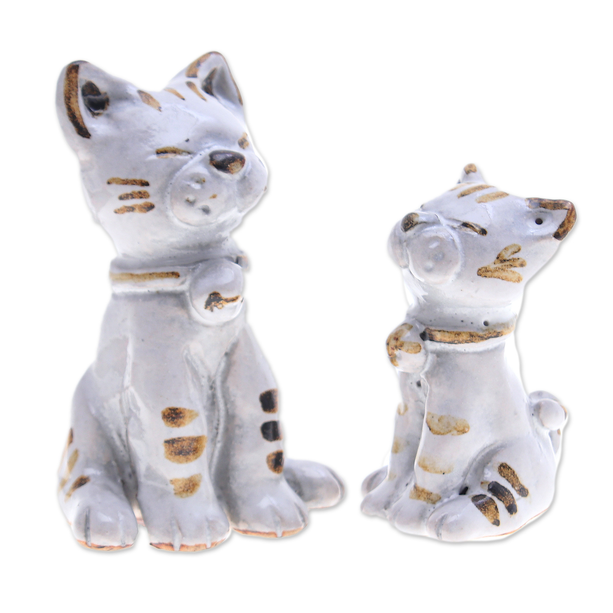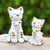 Thailand's Pa & Suksun capture the feline spirit in this set of two statuettes, made for a feline soul. Crafted from ceramic and enhanced with a lustrous glazed finish, the set portrays a pair of cats in a distinguished pose, each shining in ivory and brown hues.