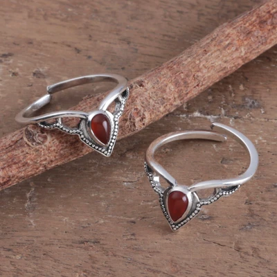 Pair of Adjustable Orange Onyx Sterling Silver Toe Rings, 'Enchanting Crown'