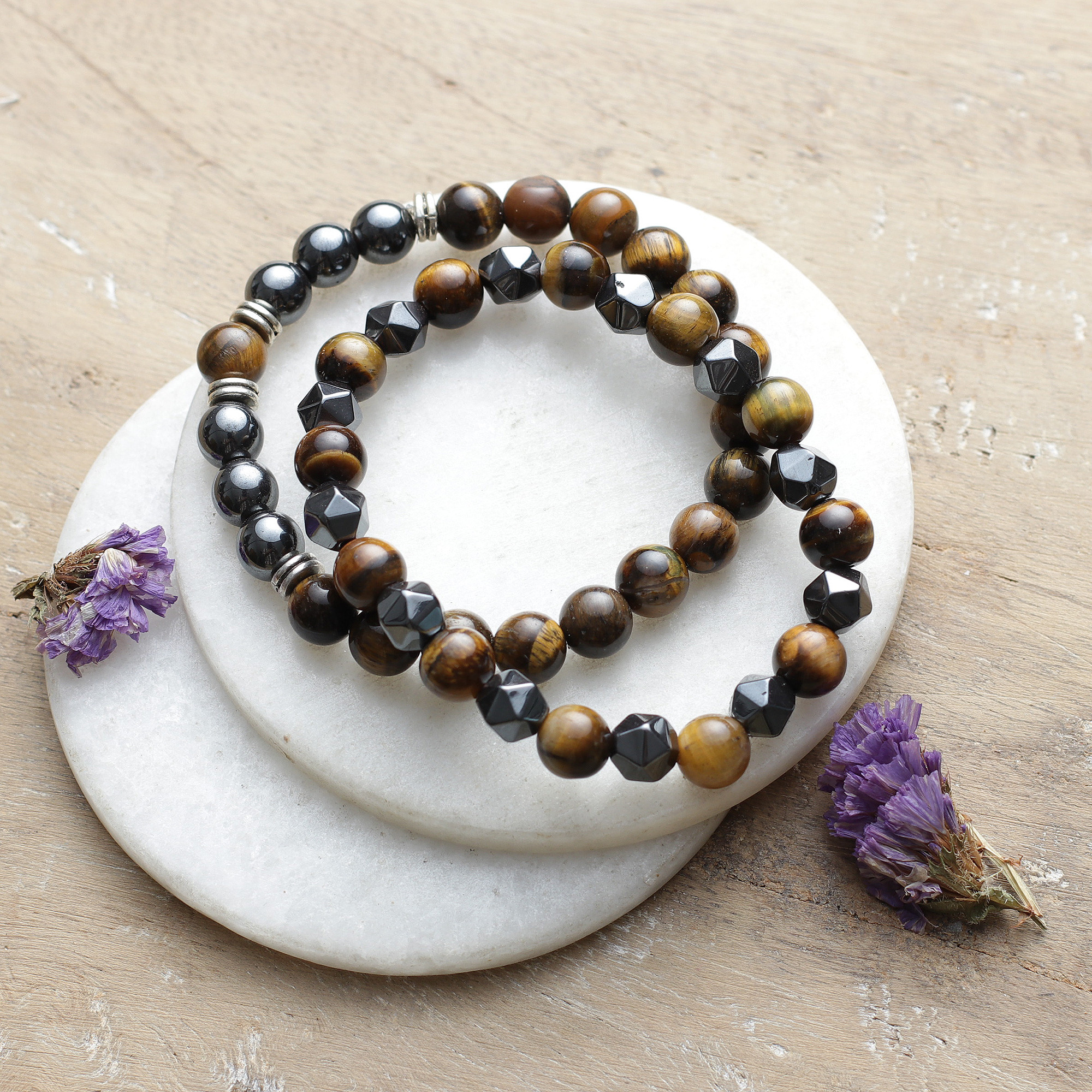 Balance your bold spirit with this stunning pair of beaded bracelets from the Indian region. Artisan Sumit Dhawan uses tiger's eye and hematite in these stretch bracelets, adorned with classic steel accents for a dapper look. The gems symbolize the union between clarity and focus, which adds a touch of mysticism.