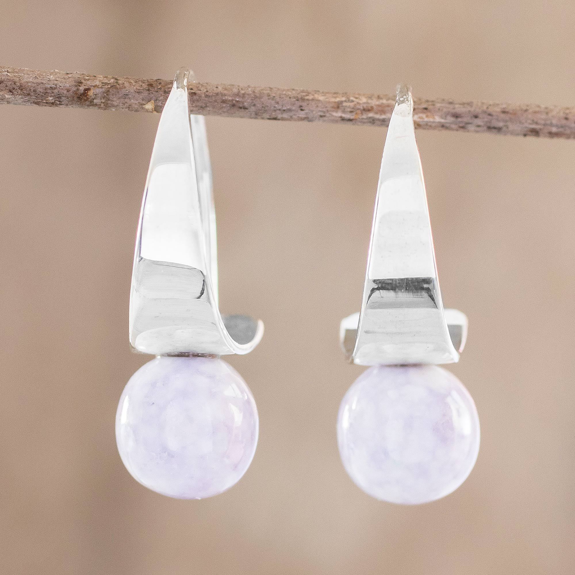 Pale Lilac Jade and Sterling Silver Earrings, 'Modern Mystic in Lilac'