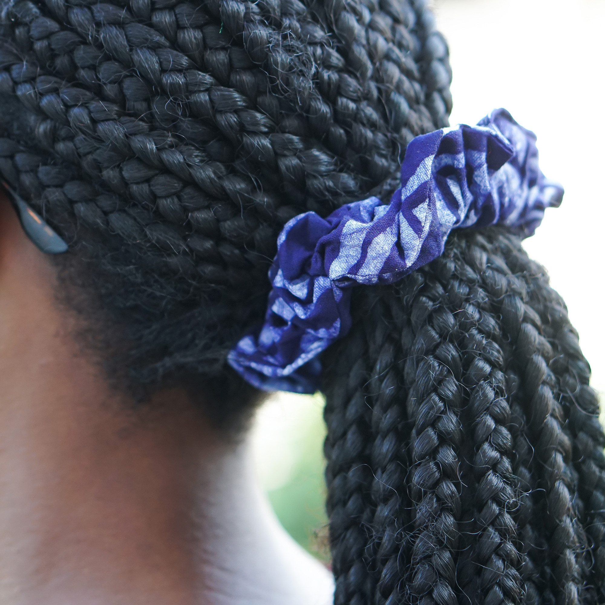 Patterned Blue Cotton Scrunchie Crafted in Ghana, 'Sea Flower'
