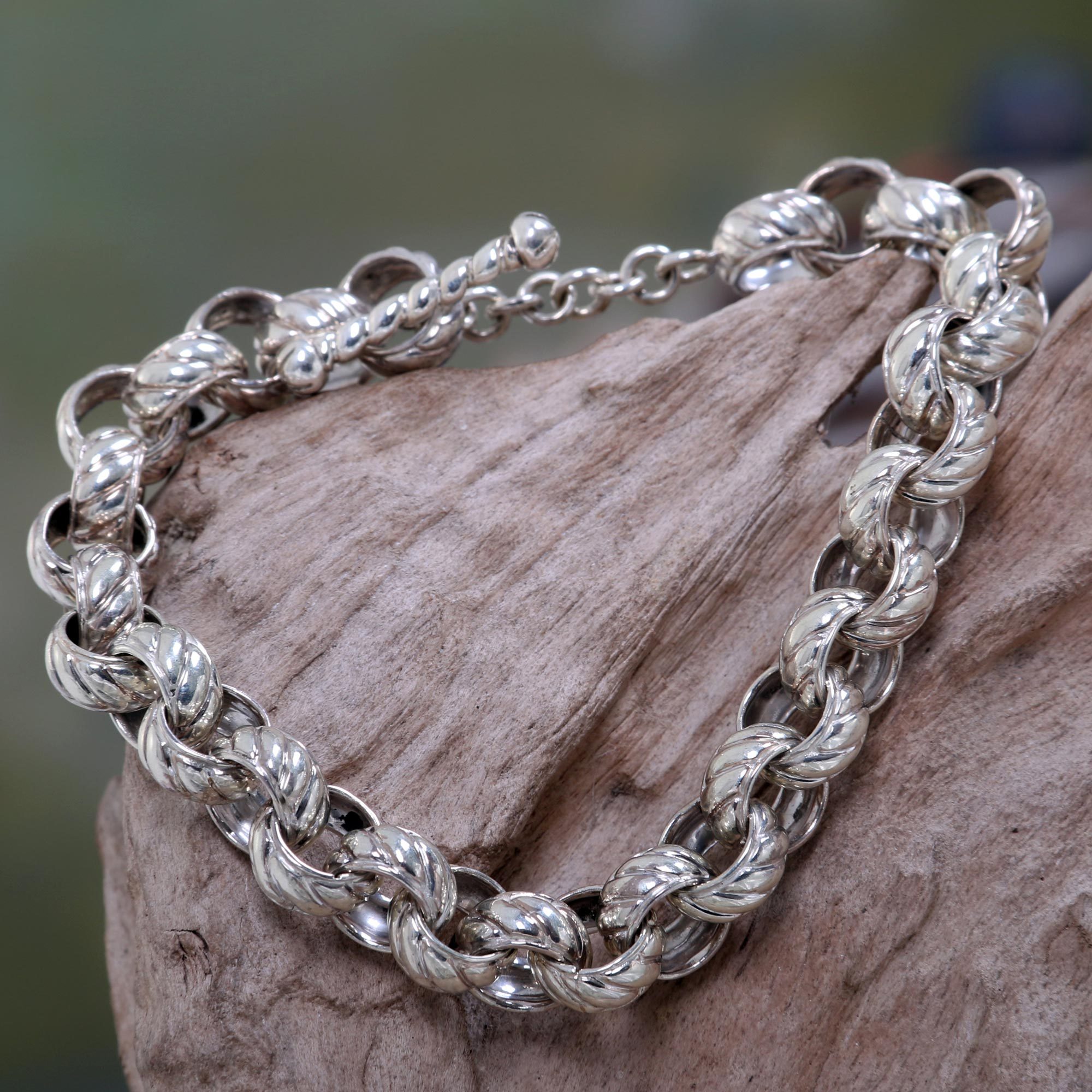 Patterned hoops link into a bracelet of modern elegance from Bali. Nyoman Ariawan crafts the sterling silver bracelet by hand with a luminous polished finish.