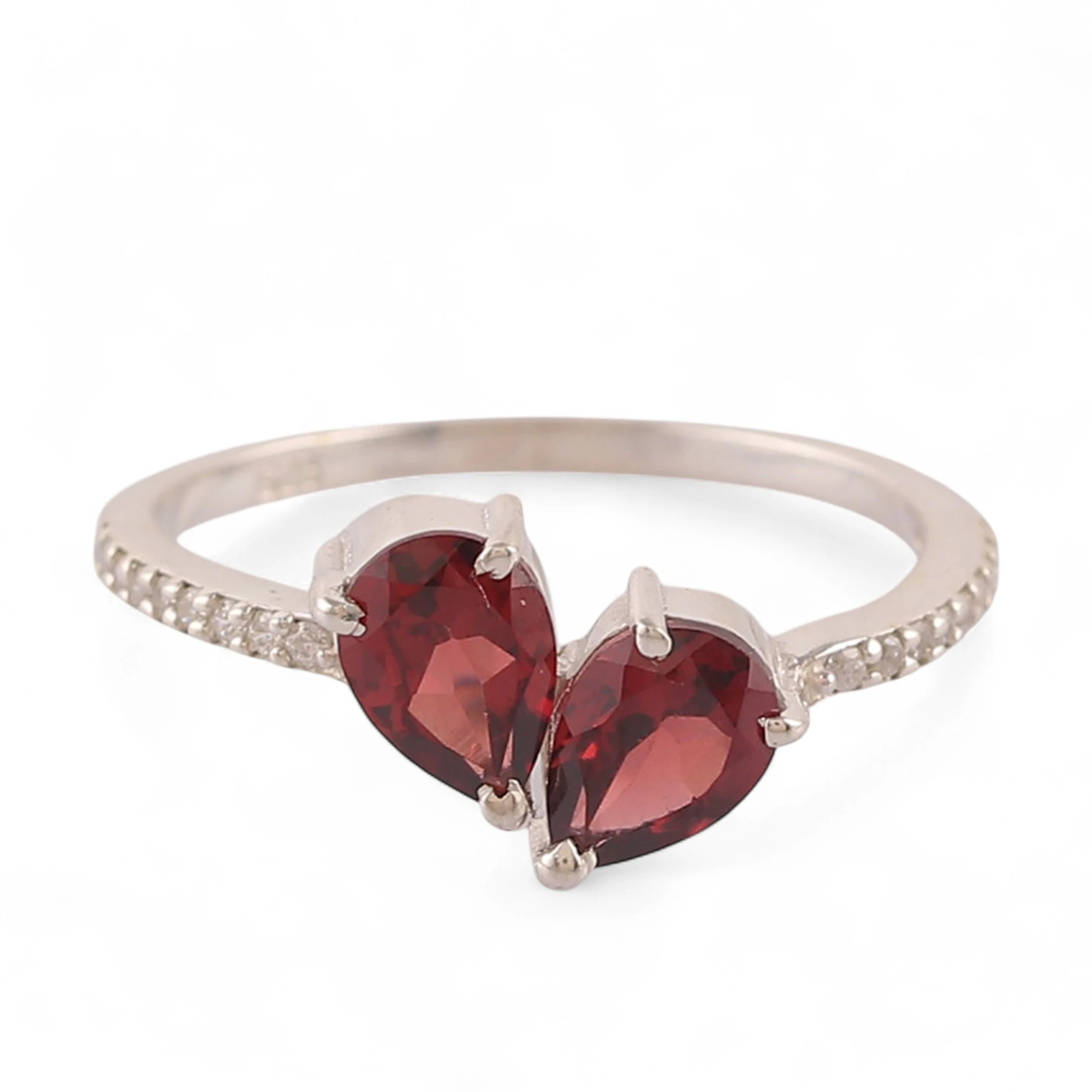 Pear Garnet Pave Cubic Zirconia and Silver Cocktail Ring, 'Blazing Glam'
