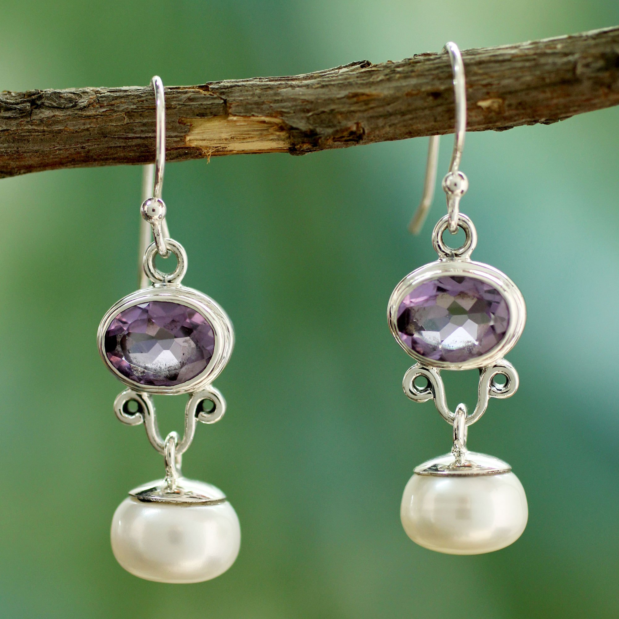 Pearl and Amethyst Dangle Earrings, 'Dazzling Delhi'