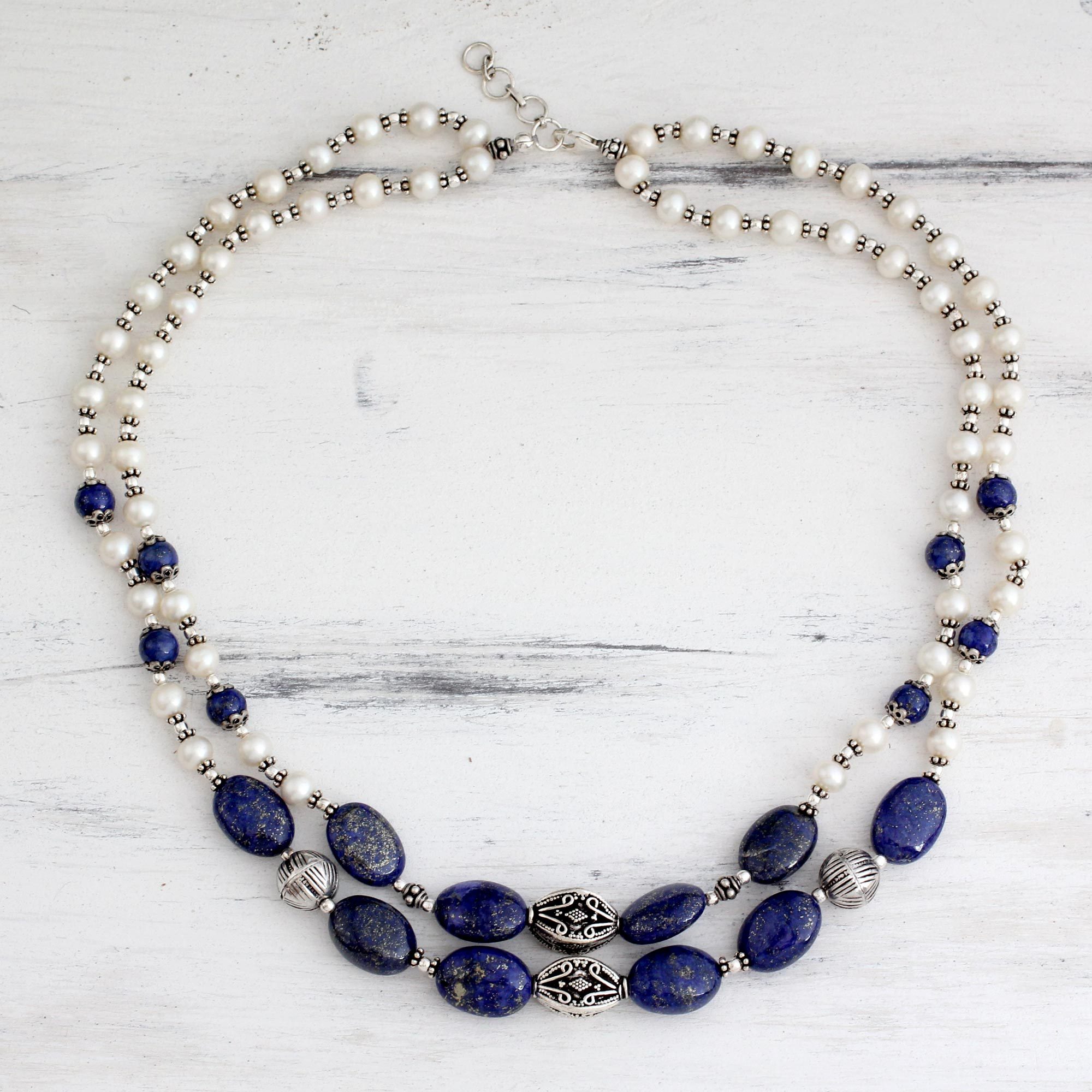 Pearl and lapis lazuli strand necklace, 'Delhi Princess'