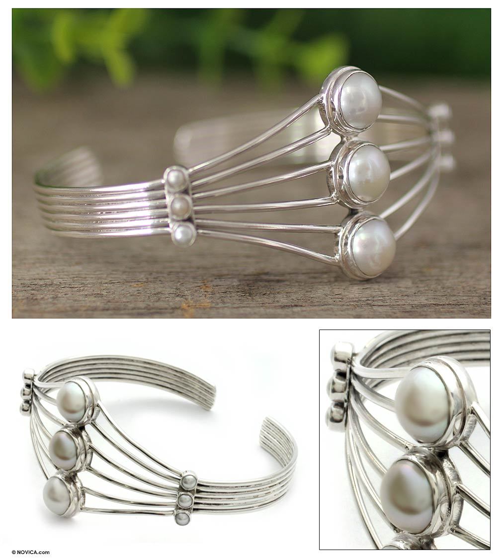 Let your emotion shine with this one of a kind pearl and sterling silver cuff bracelet. Handcrafted by Indian artist Shanker, this cuff bracelet is sure to evoke positive feelings. Show your true side with this beautifully designed pearl bracelet.