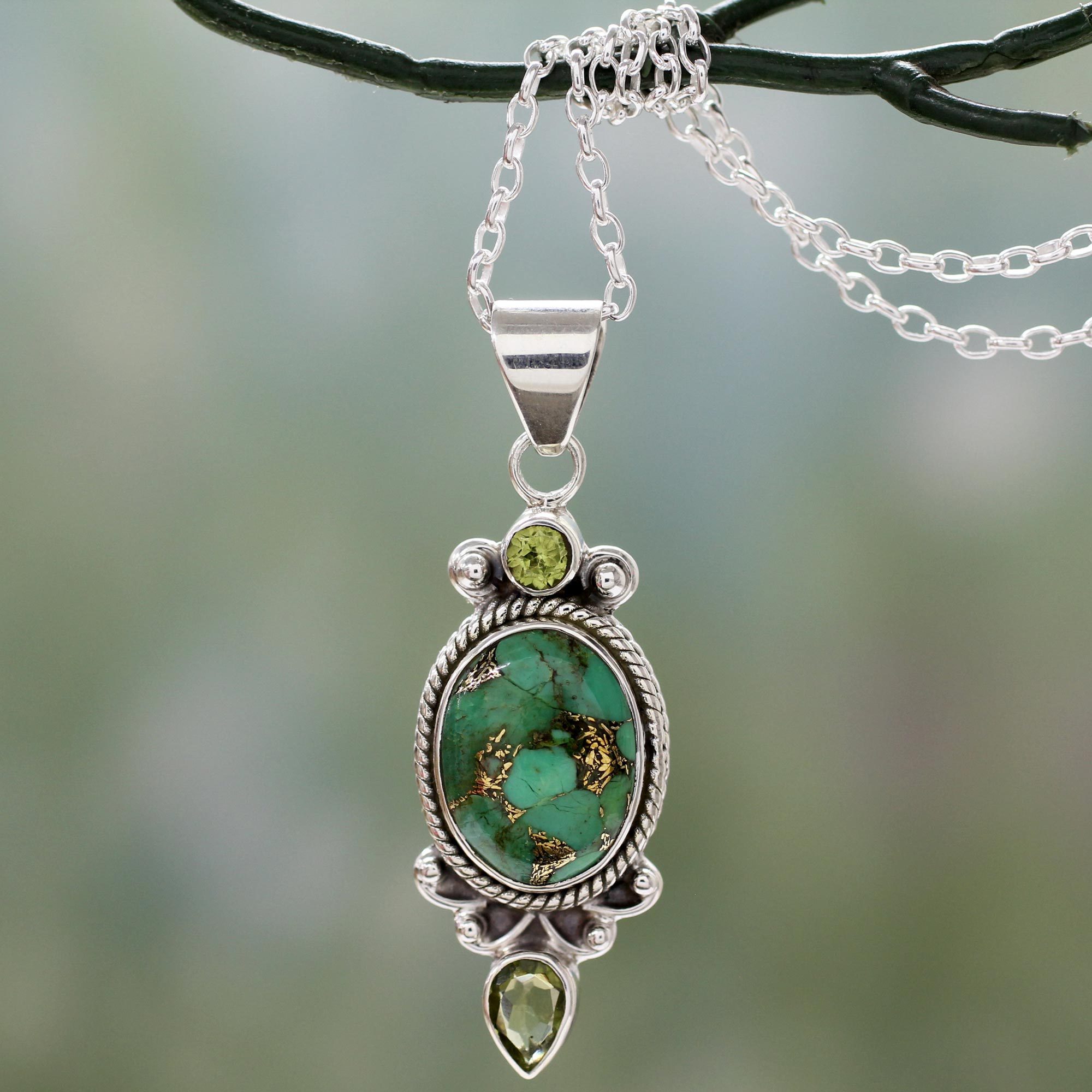 Pendant Necklace with Peridot and Composite Turquoise, 'Resplendent in Green'