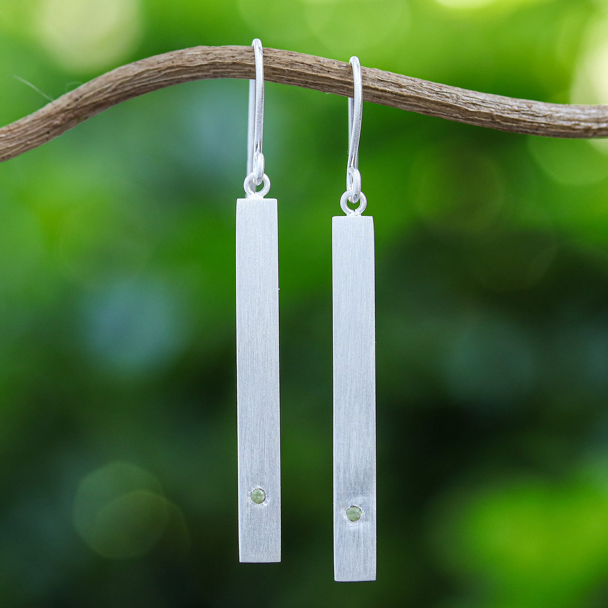 Peridot and Brushed Silver Dangle Earrings from Thailand, 'Simple Energy'