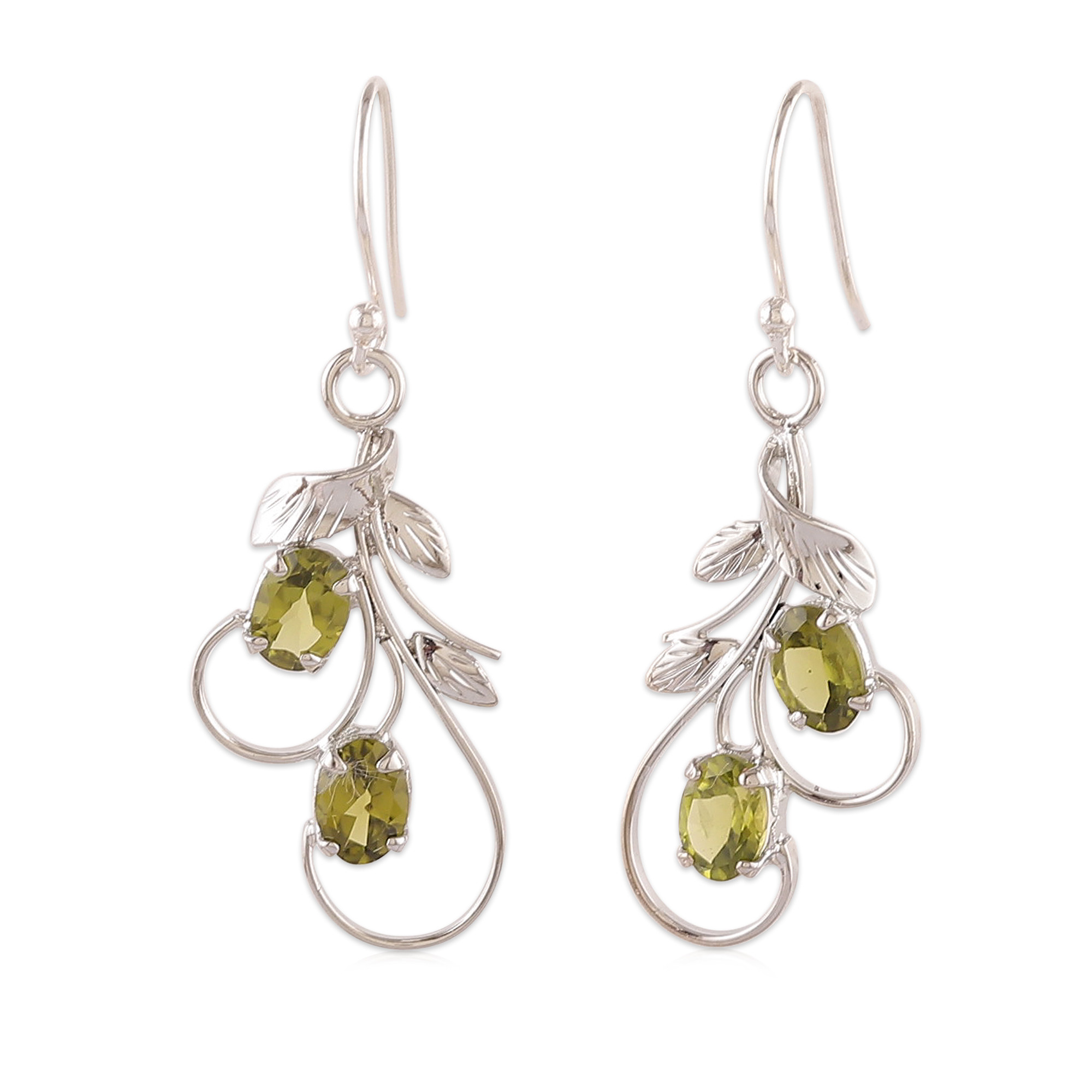Celebrate the organic beauty found in the heart of nature with these gorgeous dangle earrings, translating the elegance of leaves and tendrils into a tangible treasure. Alok Jain in India presents this chic design where brilliant peridot stones accent the gleaming sterling silver, ready to impart a touch of timeless sophistication to your style.