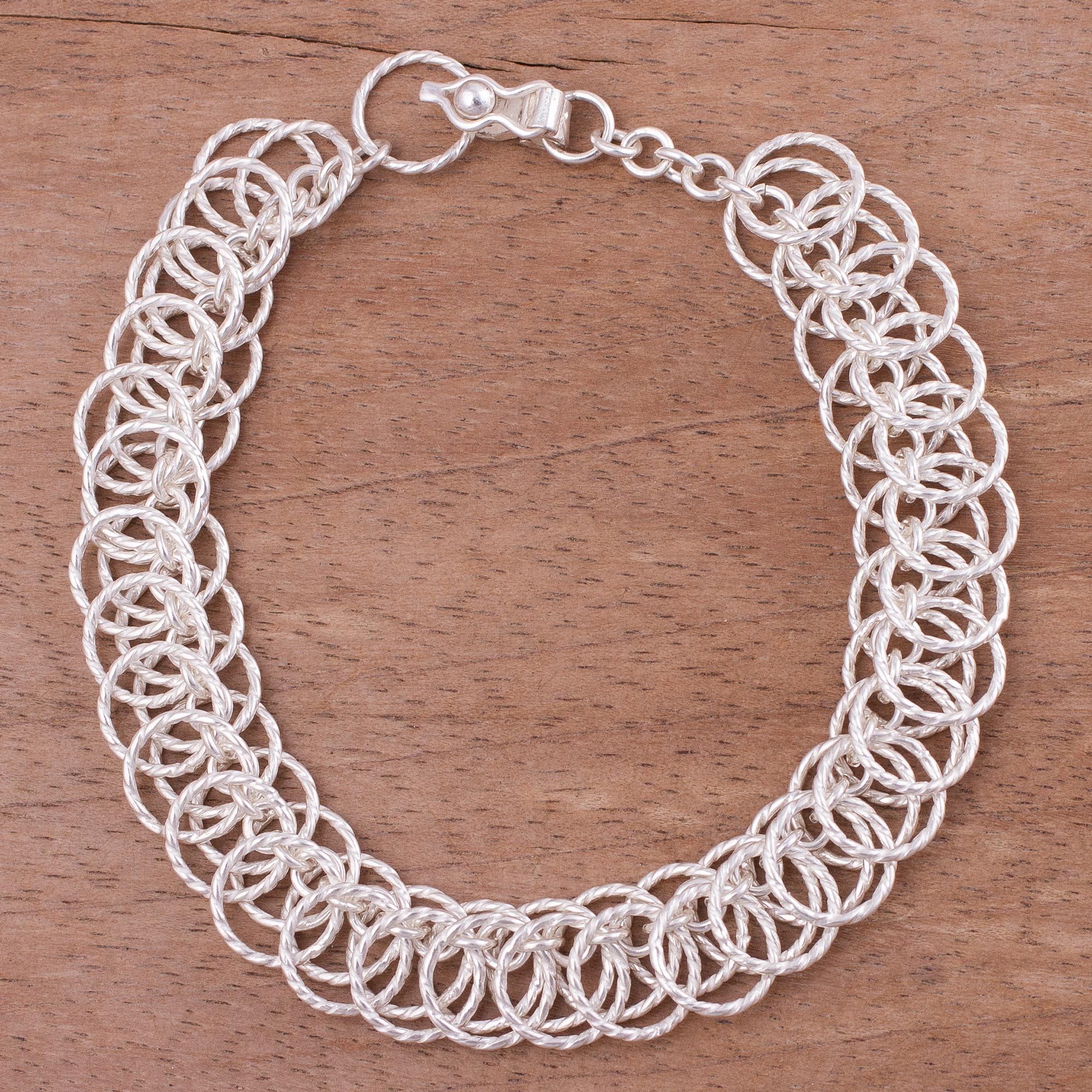 Peruvian Sterling Silver Interlocking Ring Link Bracelet, 'Peruvian Rings'