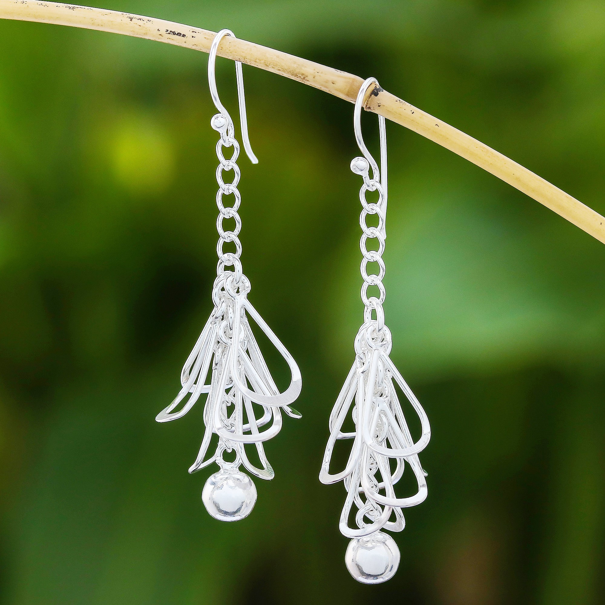 Raining from the ears, elegant petals are crafted from sterling silver with a high-polish finish. Thai artisan Lalana creates this nature-inspired pair of dangle earrings, which culminates in gleaming baubles.