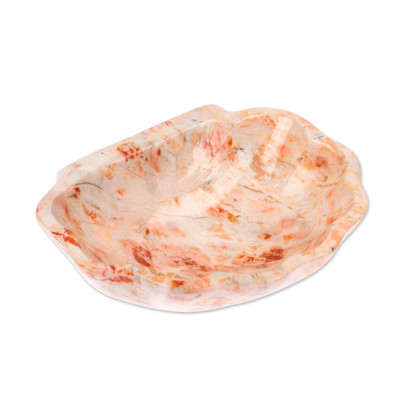 Pink White Grey Hand-Carved Natural Marble Seashell Catchall, 'Pink Seashell'