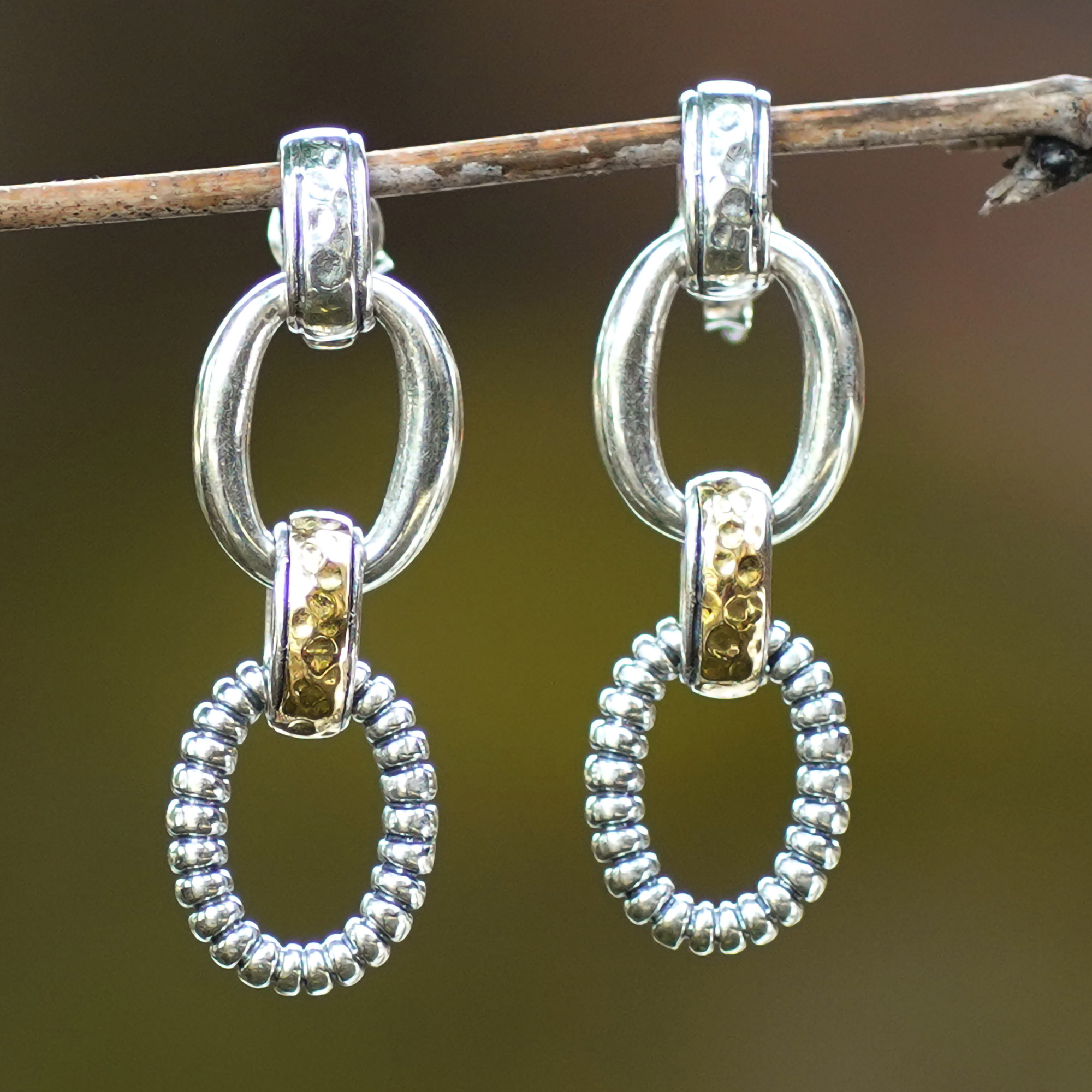 Polished 18k Gold-Accented Sterling Silver Dangle Earrings, 'Triple Energy'
