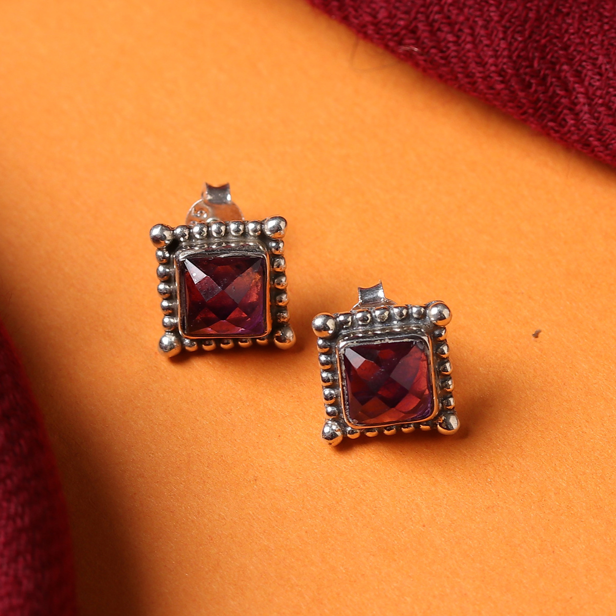 Faceted amethyst jewels cast a spell of wisdom and glamour. Set in these stud earrings presented by India's Neeru Goel, the stones enhance their purple beauty with exquisite silversmithing work, where sterling silver crowns the four-carat pair with shiny bubbles.