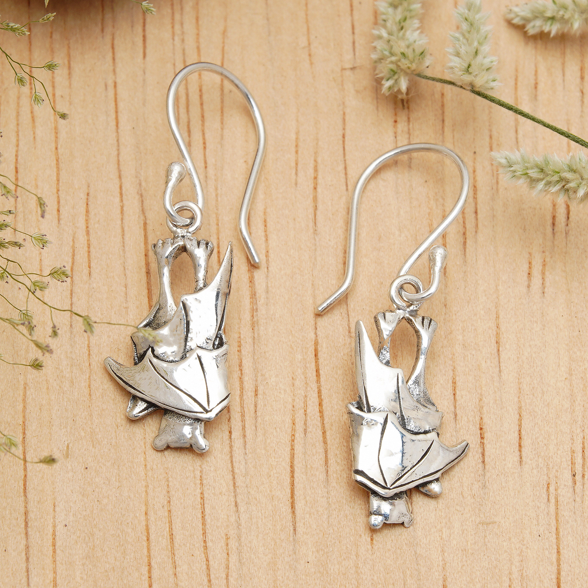 Align with nocturnal energies by wearing this stunning bat-shaped pair from the Balinese Islands. Inspired by mystery and boldness, Dewa Arimbawa creates these sterling silver dangle earrings in a combination of polished and oxidized finishes, enriching the capricious details forming the bat pendants.
