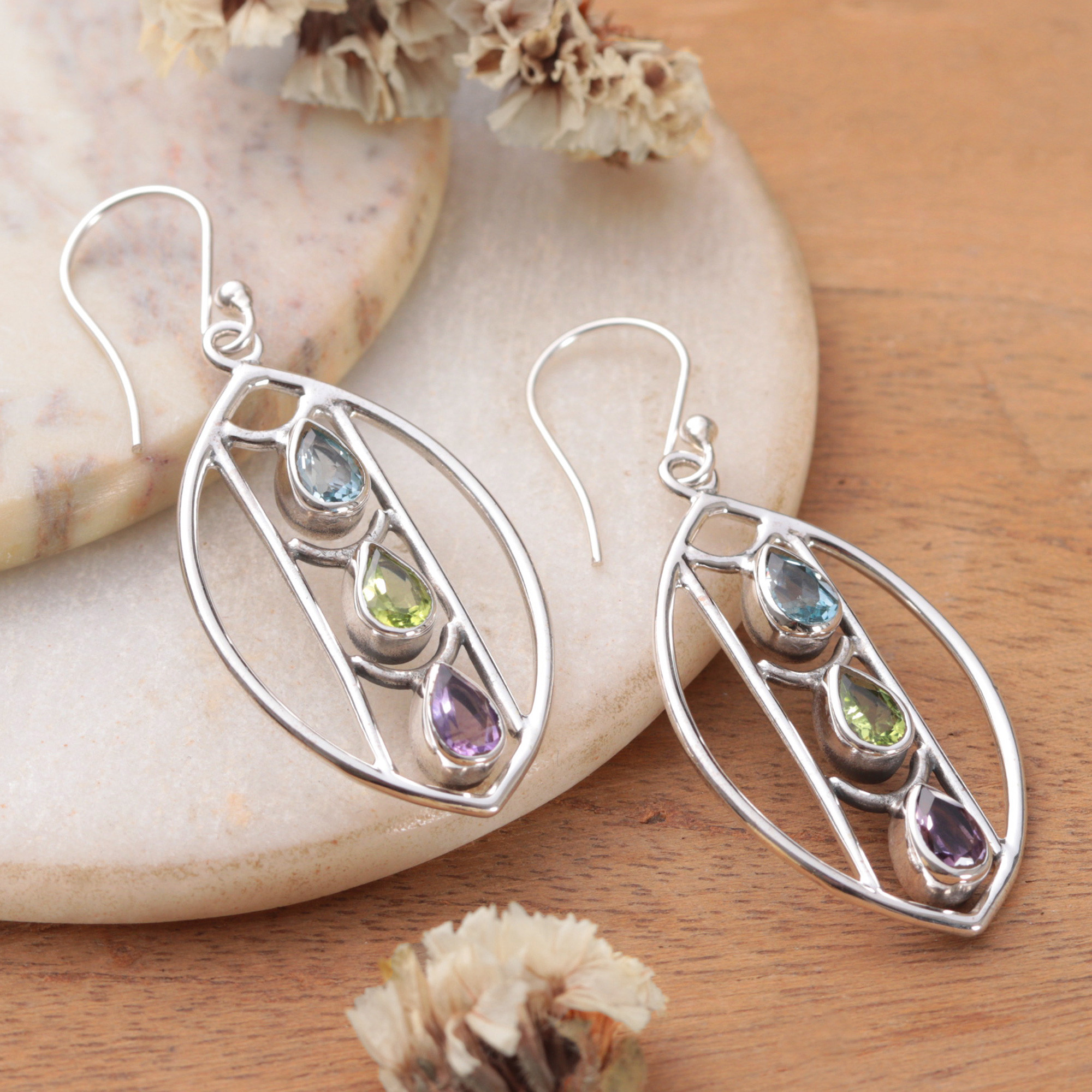 • 925 sterling silver, amethyst, peridot, blue topaz