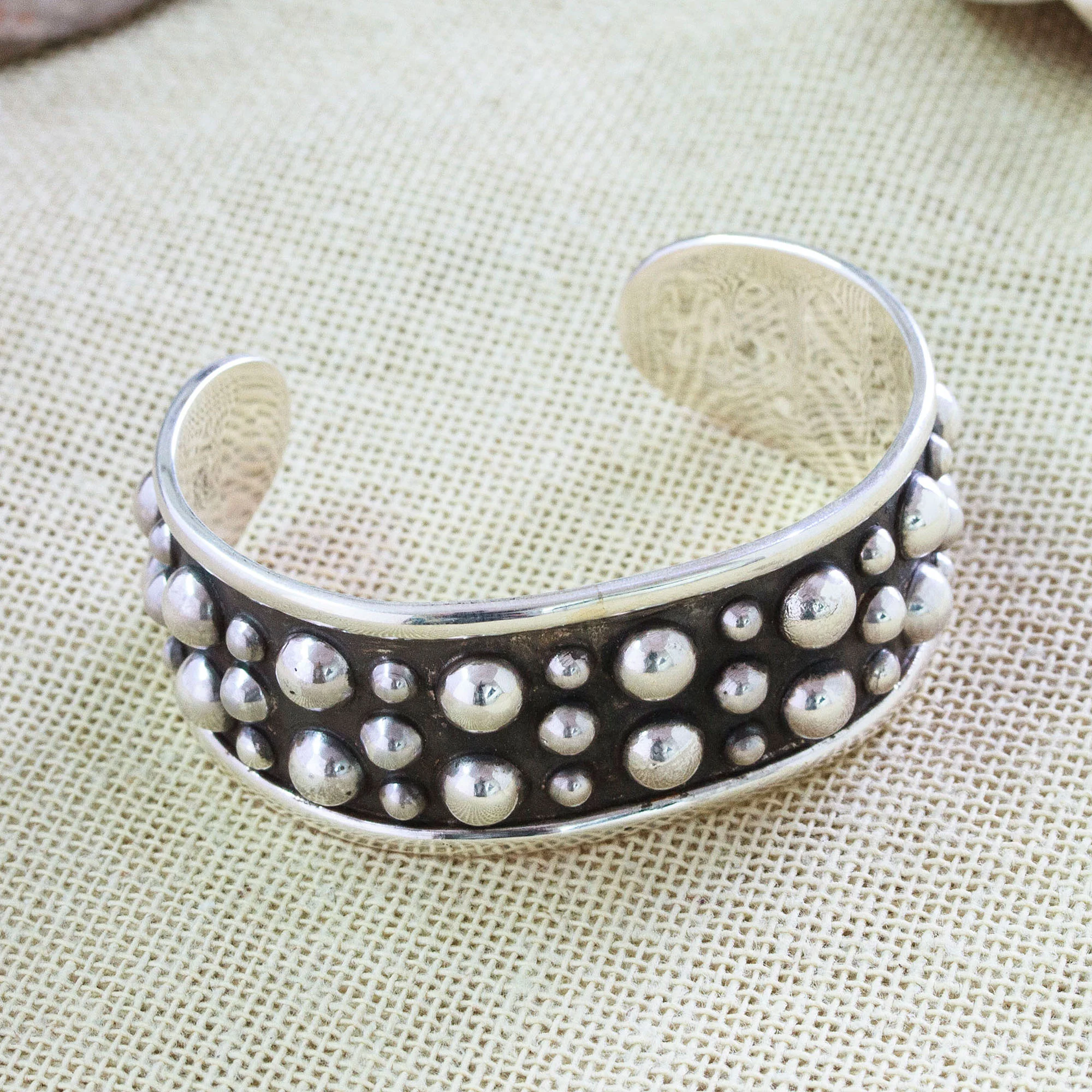 Polished Bubble-Patterned Sterling Silver Cuff Bracelet, 'Palatial Bubbles'